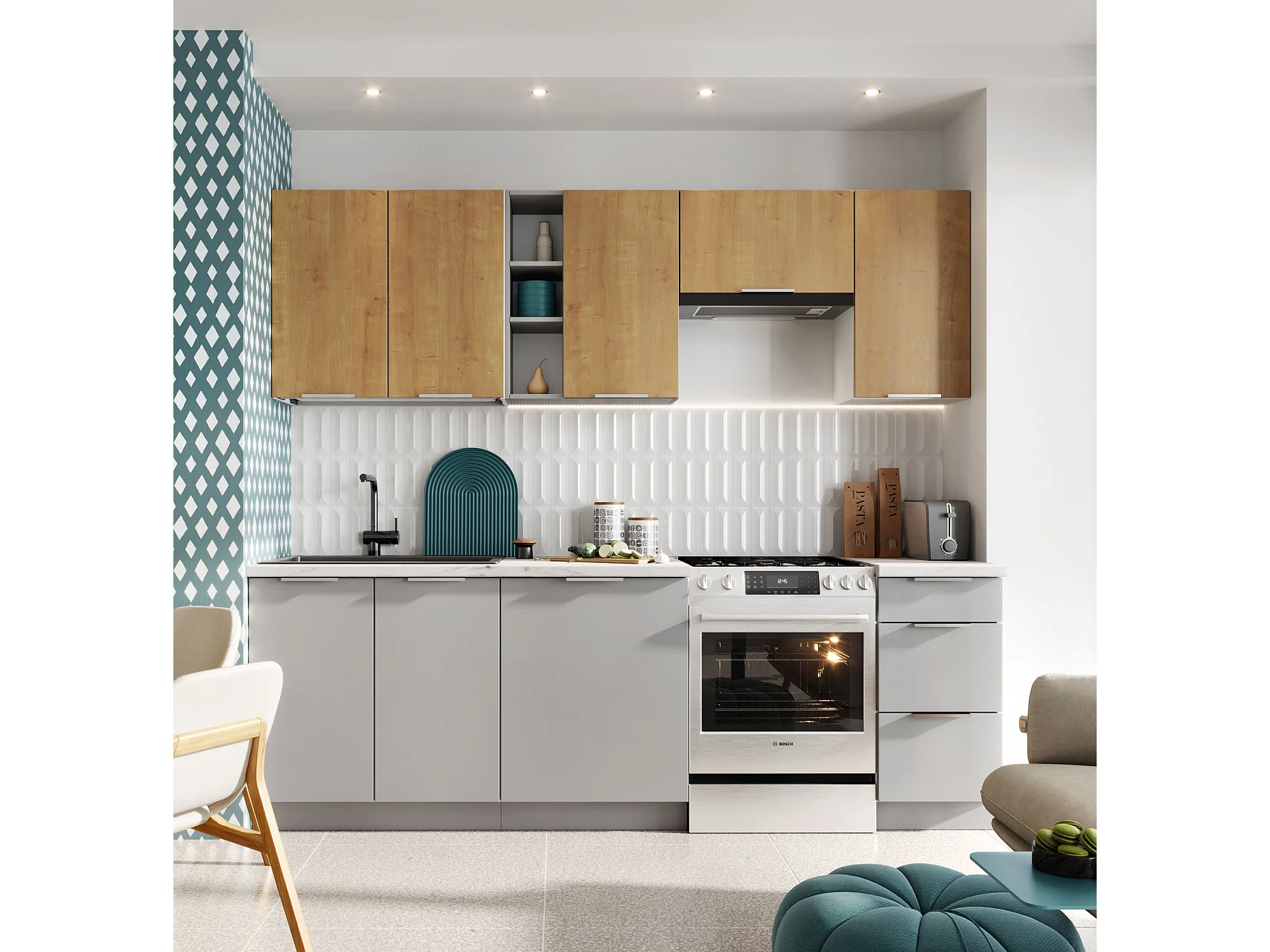 Cuisine complète Ela 7 éléments couleur chêne/gris clair - Longueur 240 cm