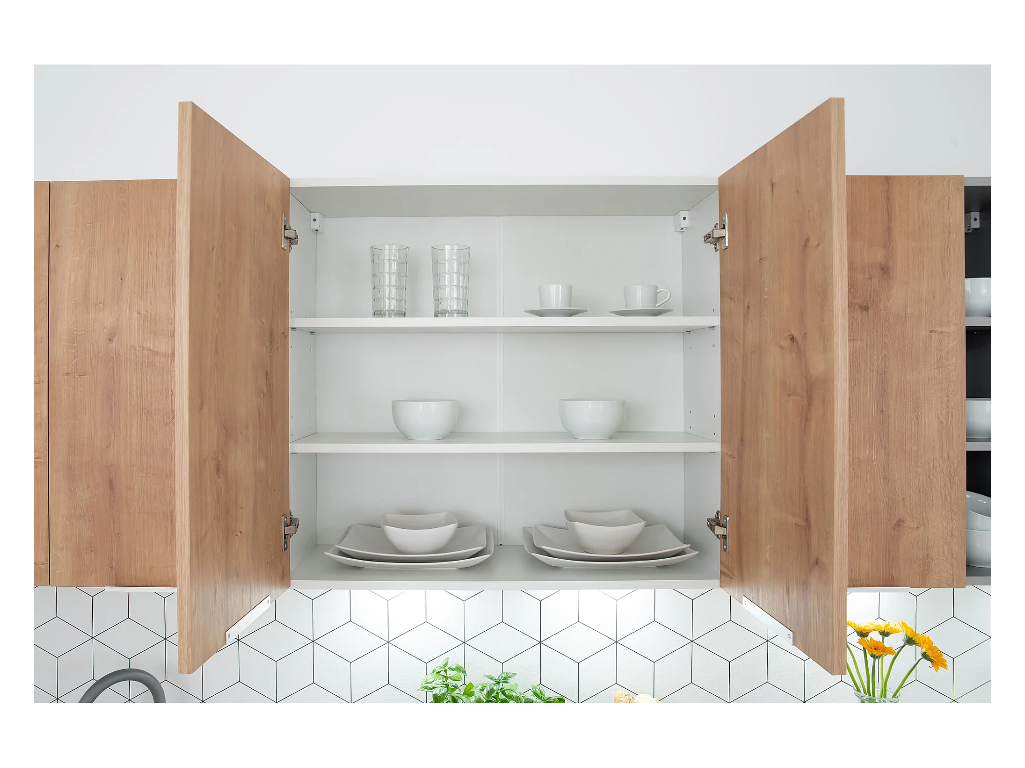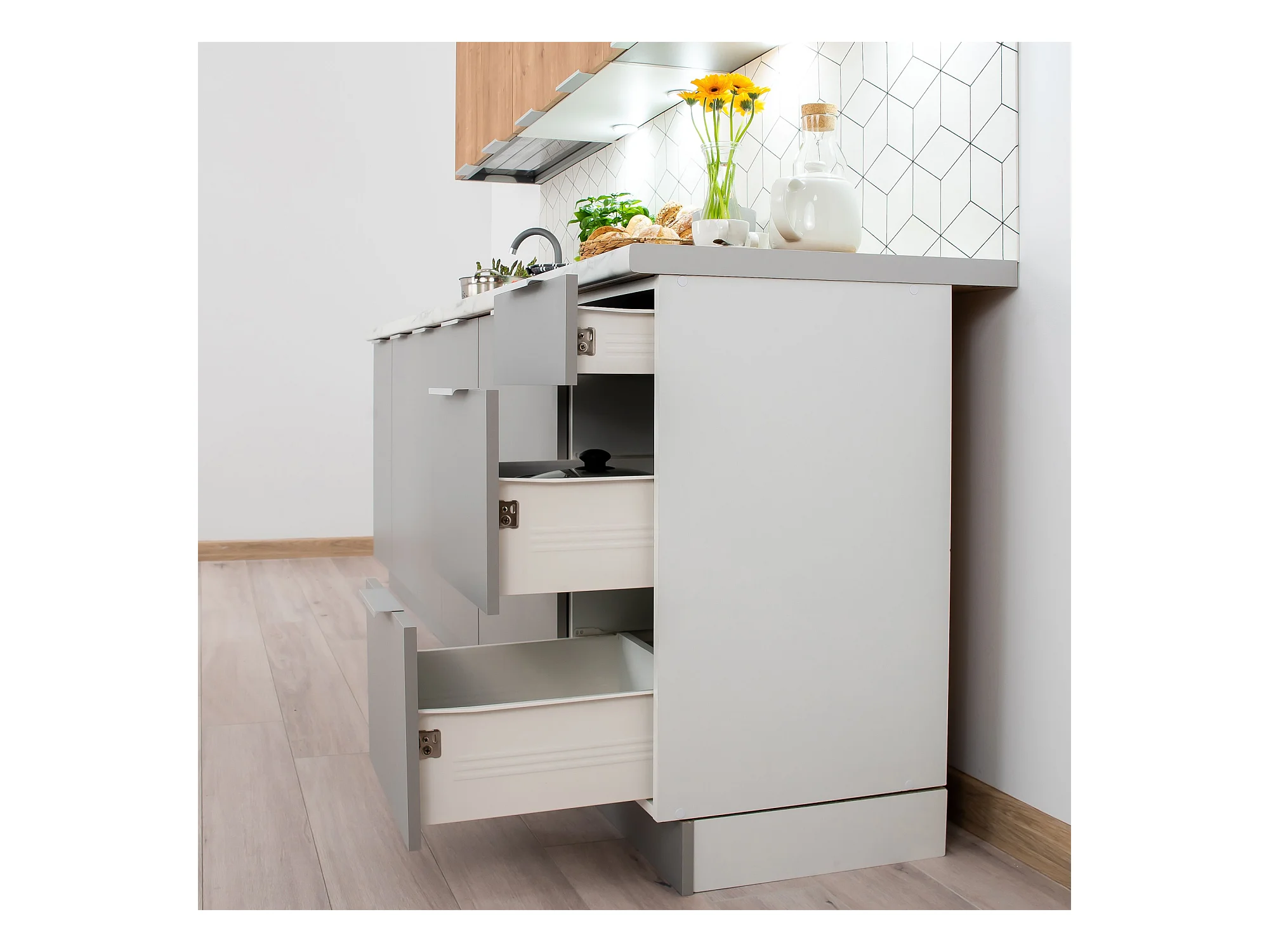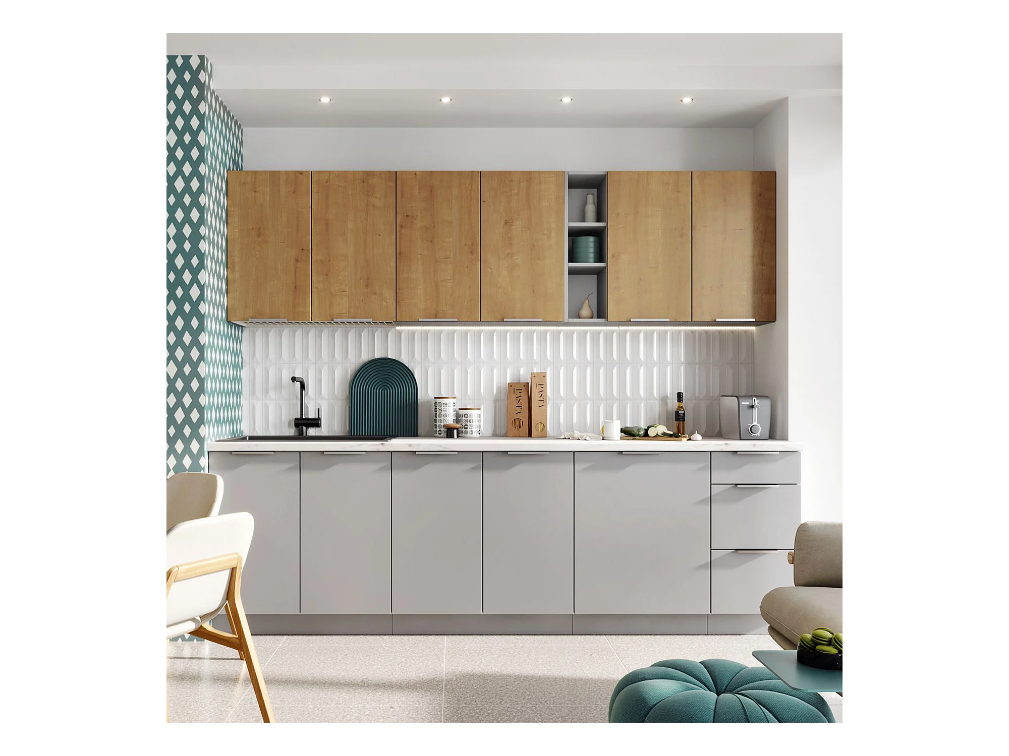 Cuisine complète Ela 8 éléments couleur chêne/gris clair - Longueur 260 cm