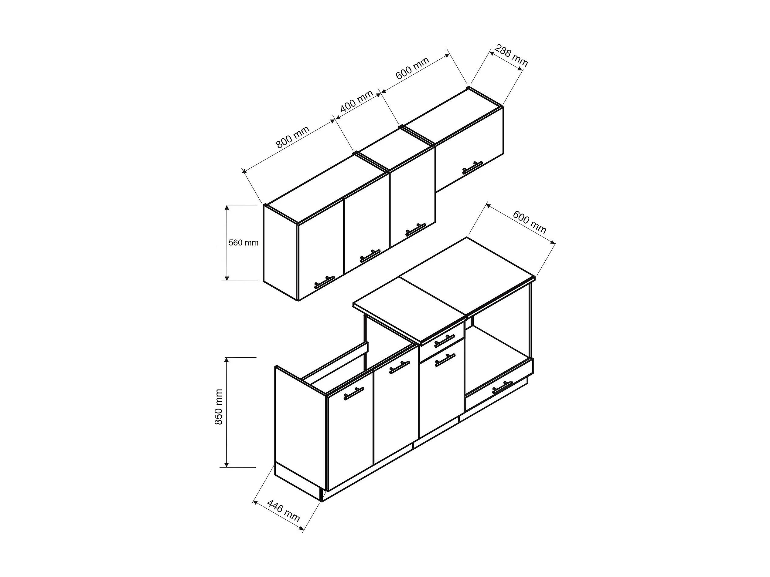 Cuisine complète MILA 6 éléments couleur sonoma avec plan de travail inclus - Longueur 180 cm