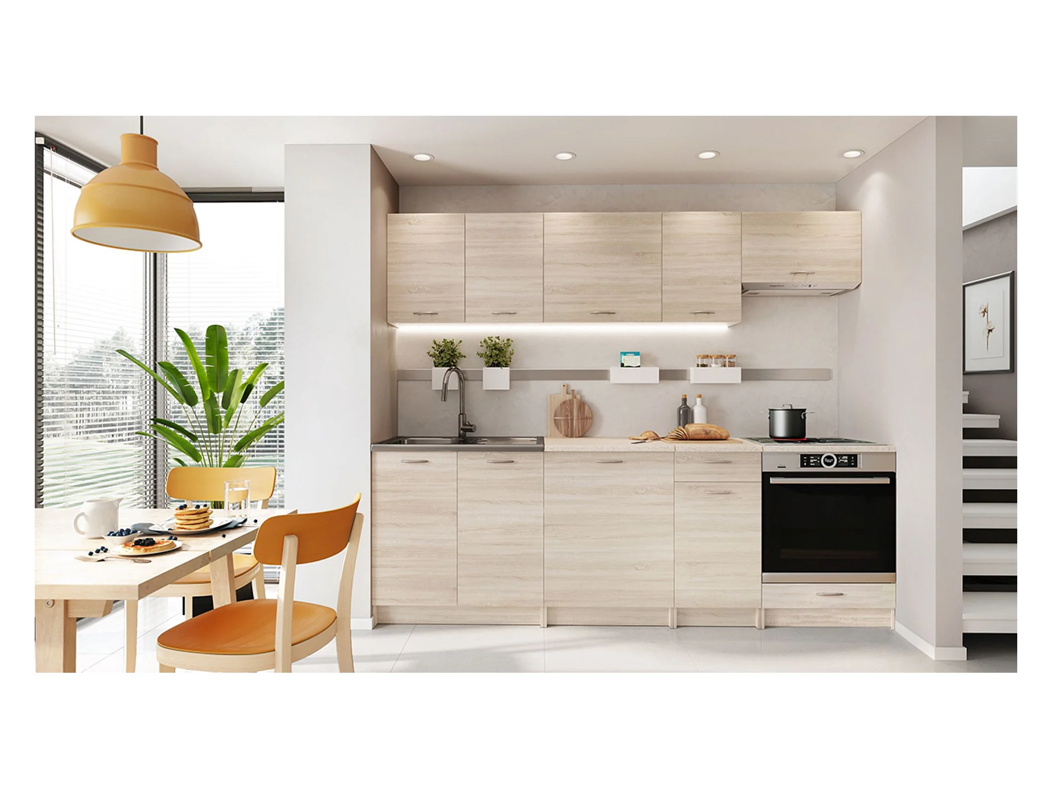 Cuisine complète MILA 8 éléments couleur sonoma avec plan de travail inclus - Longueur 240 cm