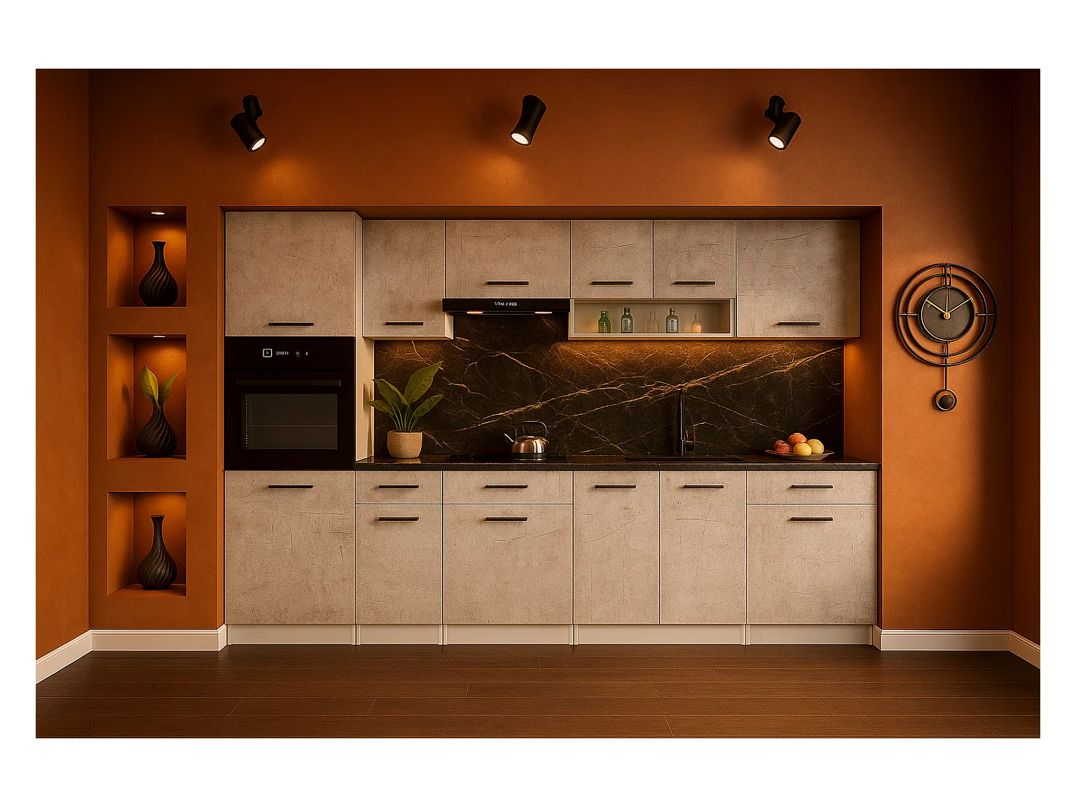 Cuisine complète VIKI Béton gris 300 cm avec colonne four 9 éléments 18 mm