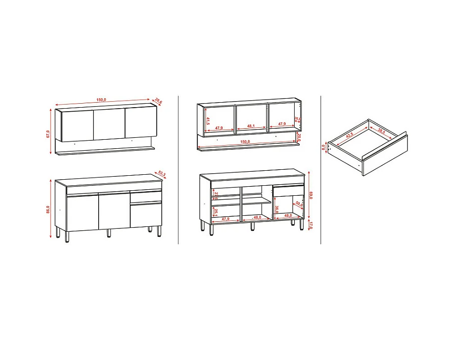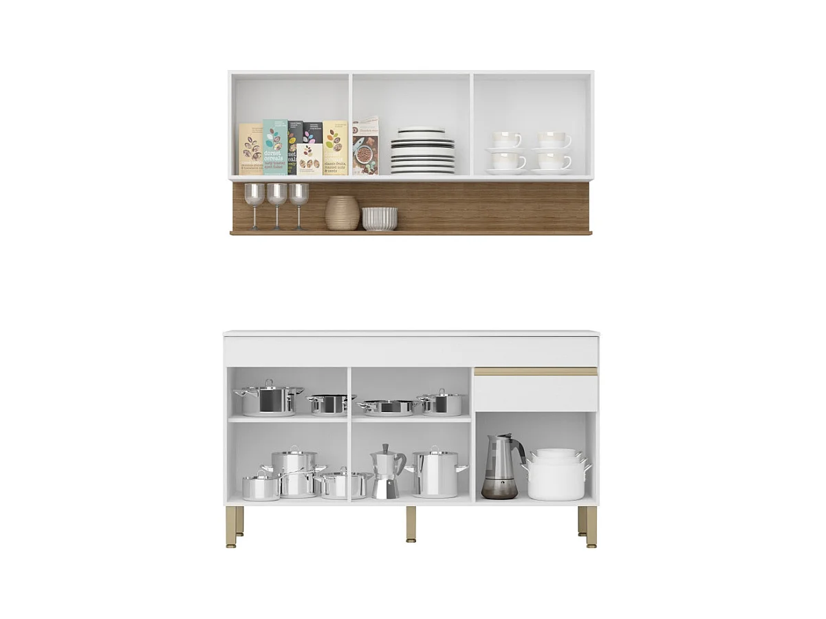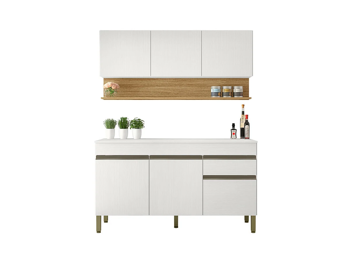 Cuisine Equipée 6 Portes 1 Tiroir Chêne et Blanc L 150 H 200 P 53.3 cm