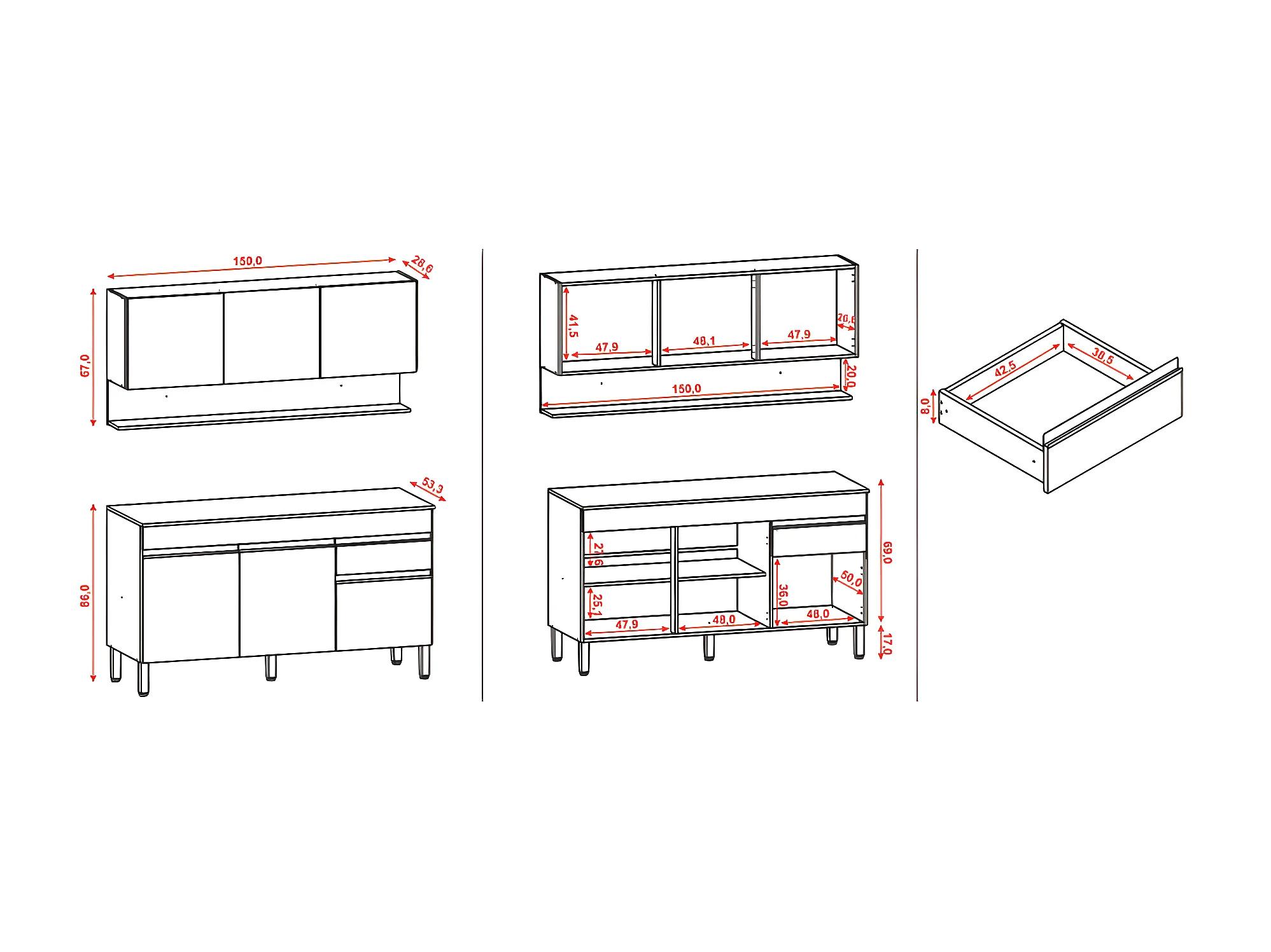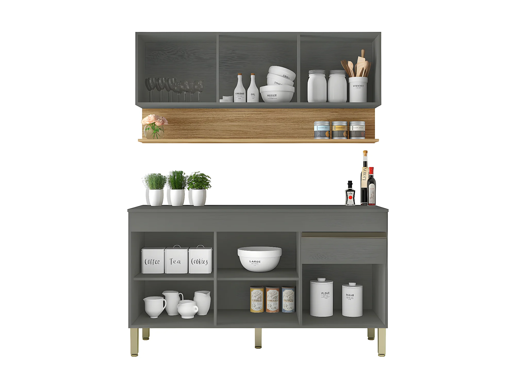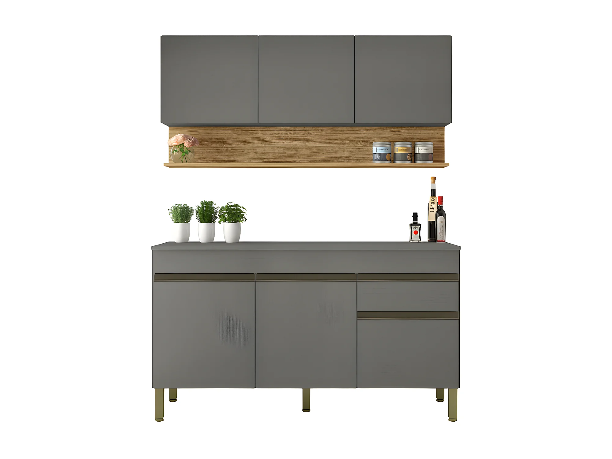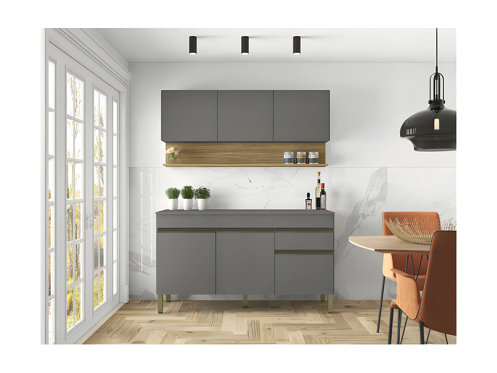 Cuisine Equipée 6 Portes 1 Tiroir Chêne et Gris L 150 H 200 P 53.3 cm