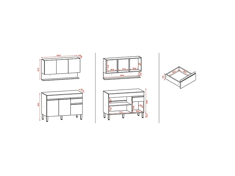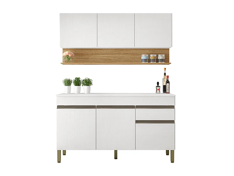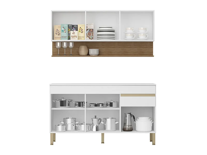 Cuisine Equipée 6 Portes 1 Tiroir Chêne et Blanc 9 NIches L 120 H 200 P 53.3 cm