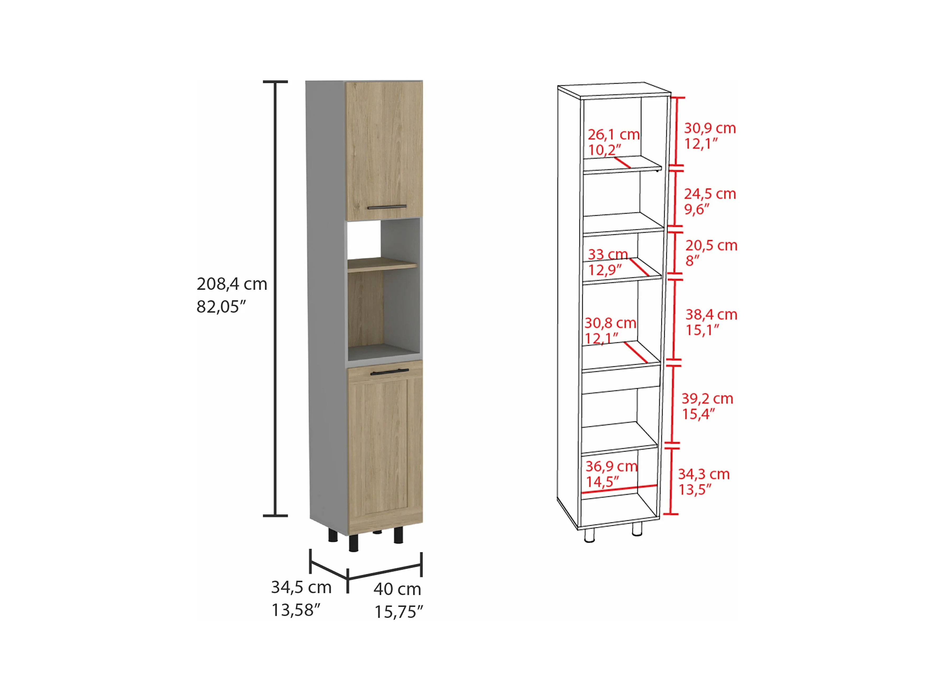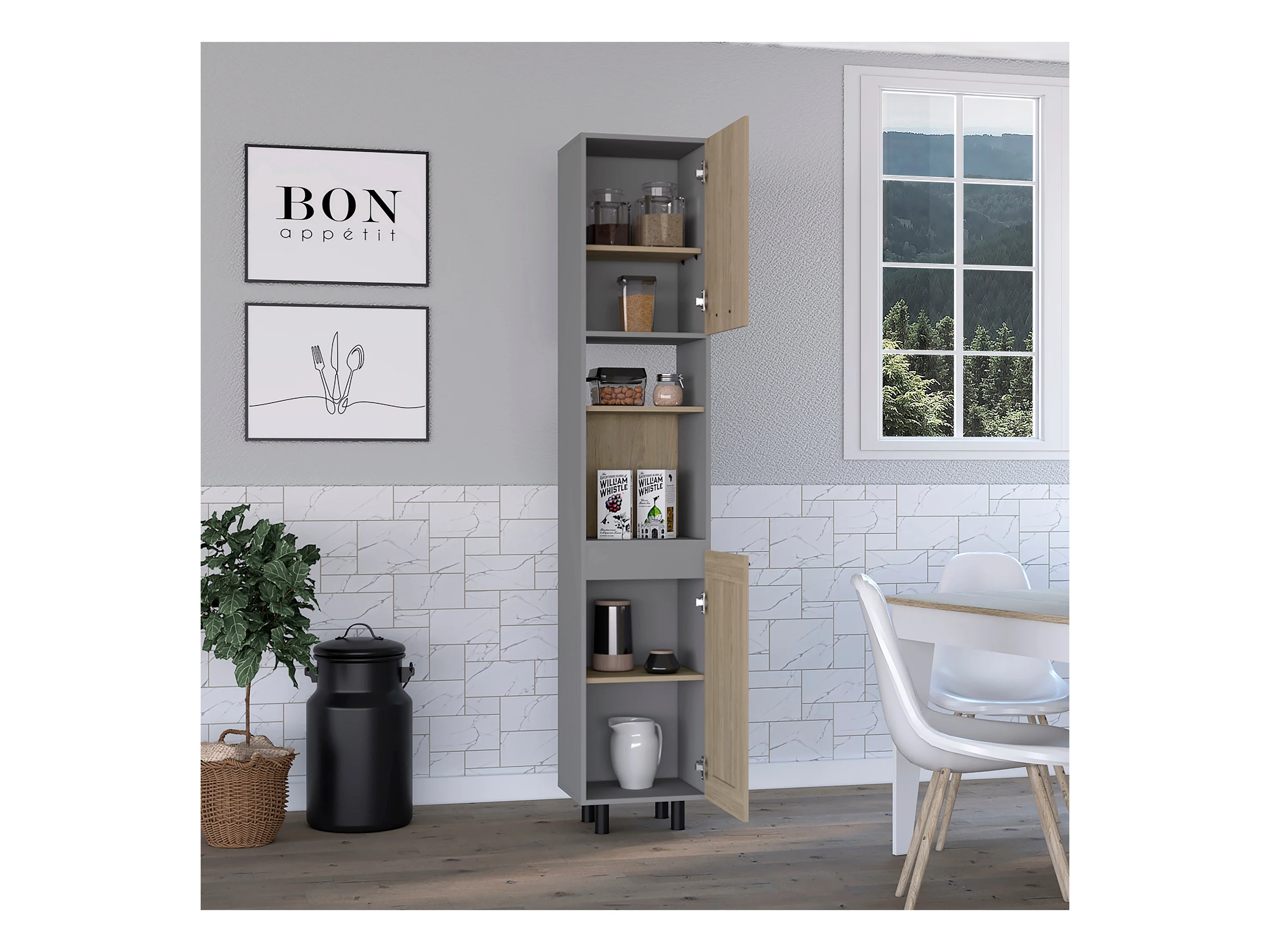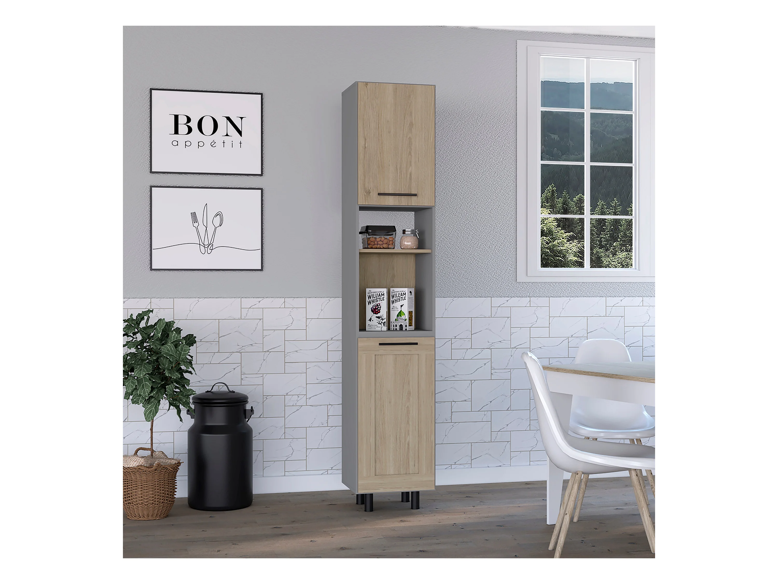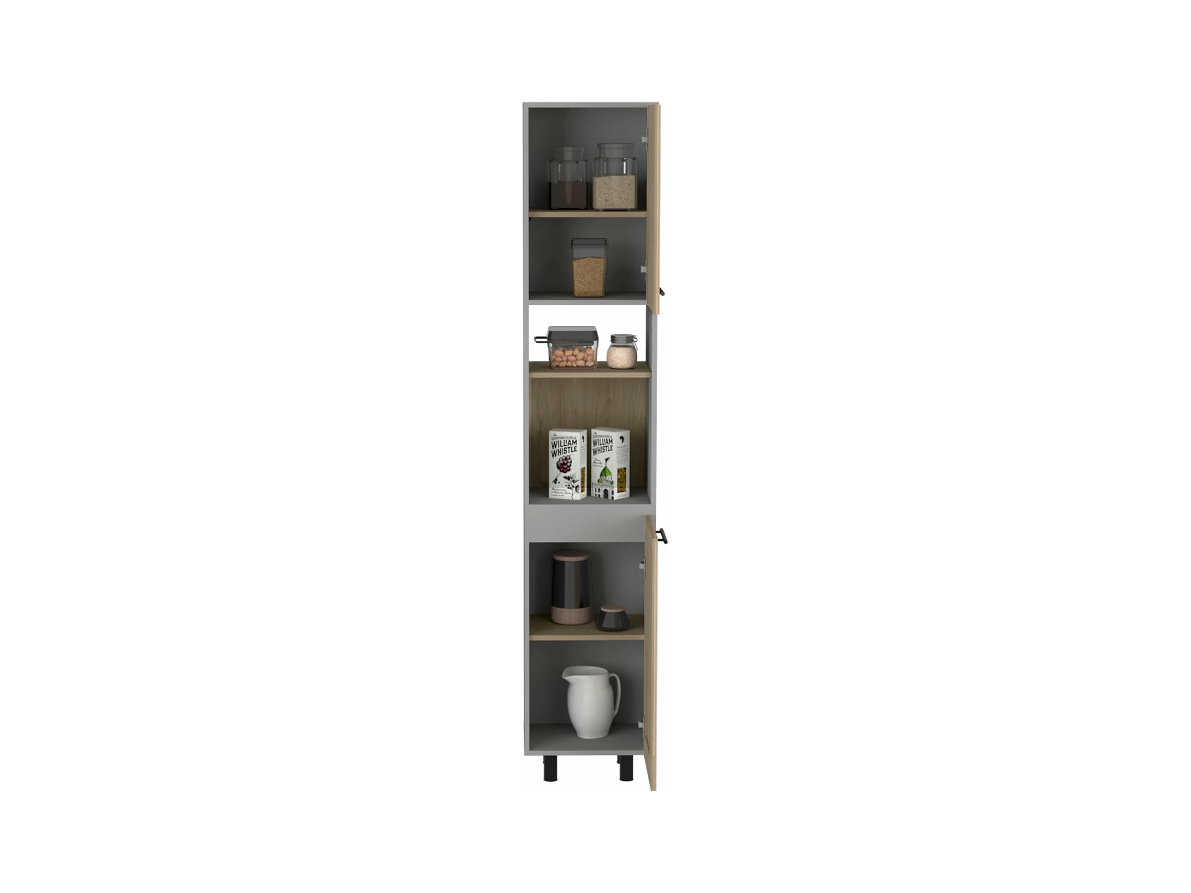 Cuisine haute Hasselt, avec deux armoires de rangement et étagères intérieures, 208,4 cm à x 13,75 cm P x 15,75 cm L, gris / rovere