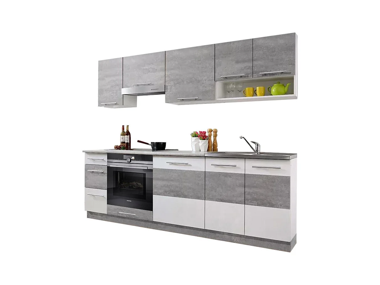 Cuisine LAX 8 éléments - BETON et blanc mat 240 cm