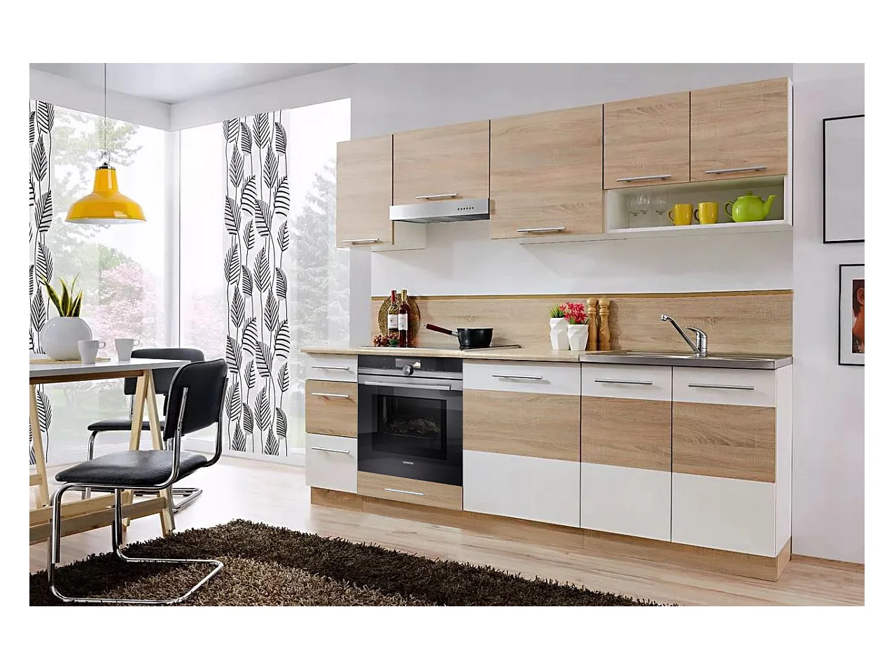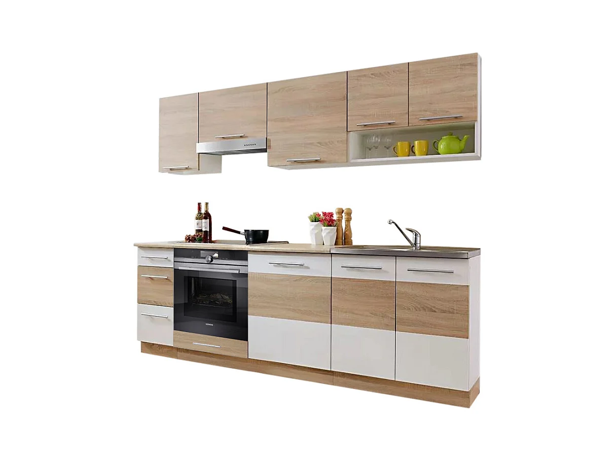 Cuisine LAX 8 éléments - finition BOIS et blanc mat 240 cm