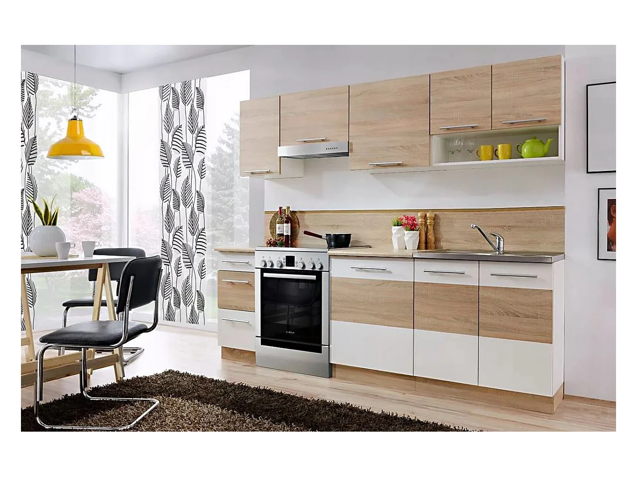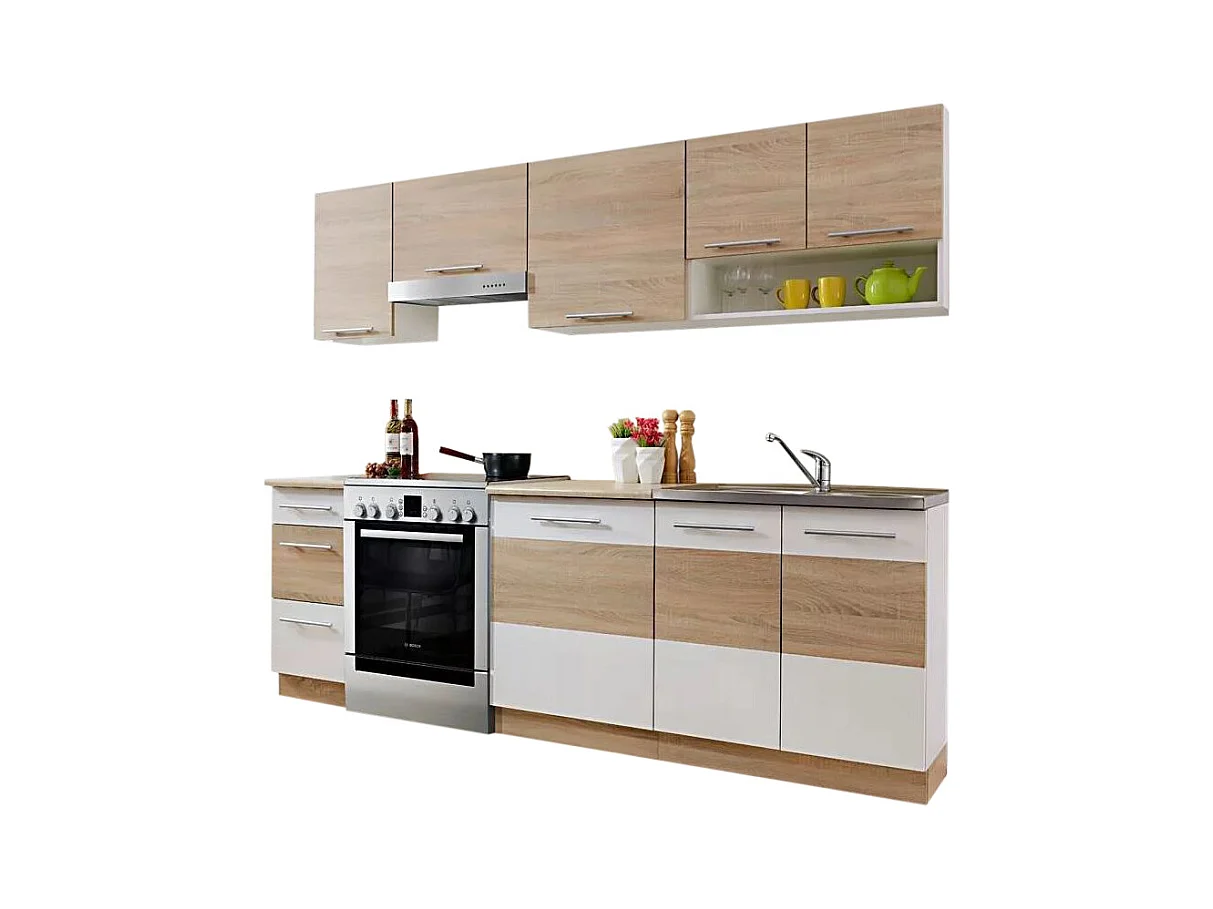 Cuisine LAX finition BOIS et blanc mat 7 éléments 240 cm