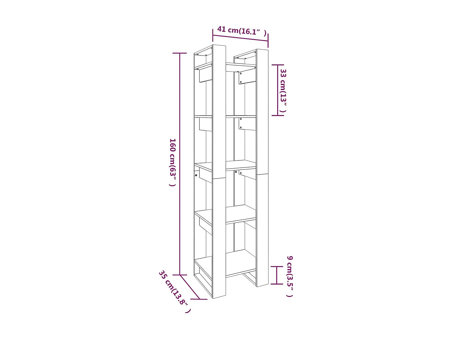 Marie-Pauline Bibliothèque/Séparateur de pièce Gris 80x35x160 cm Bois massif