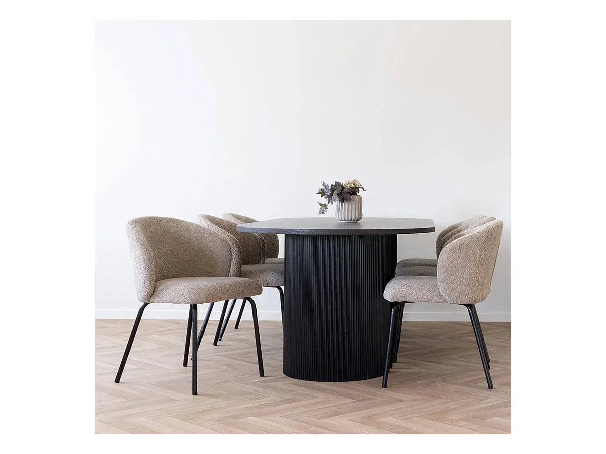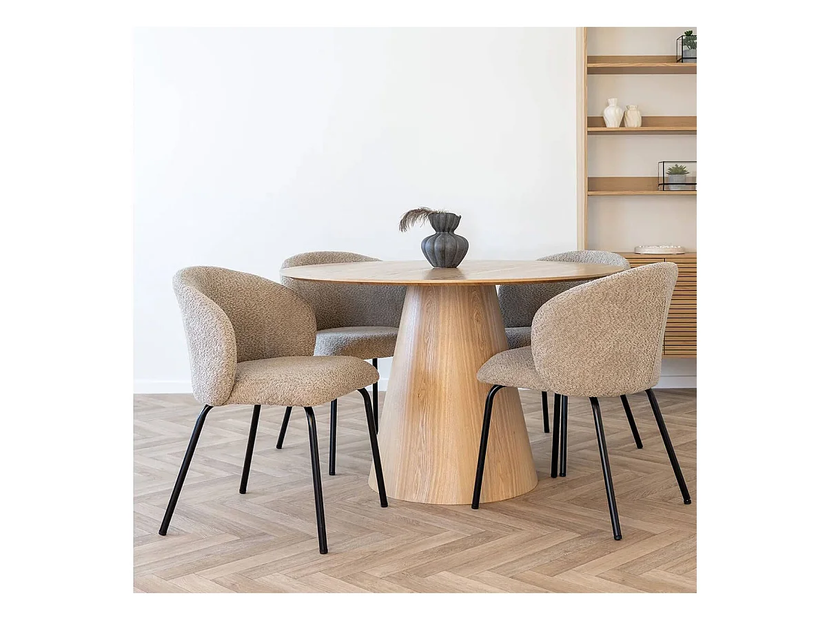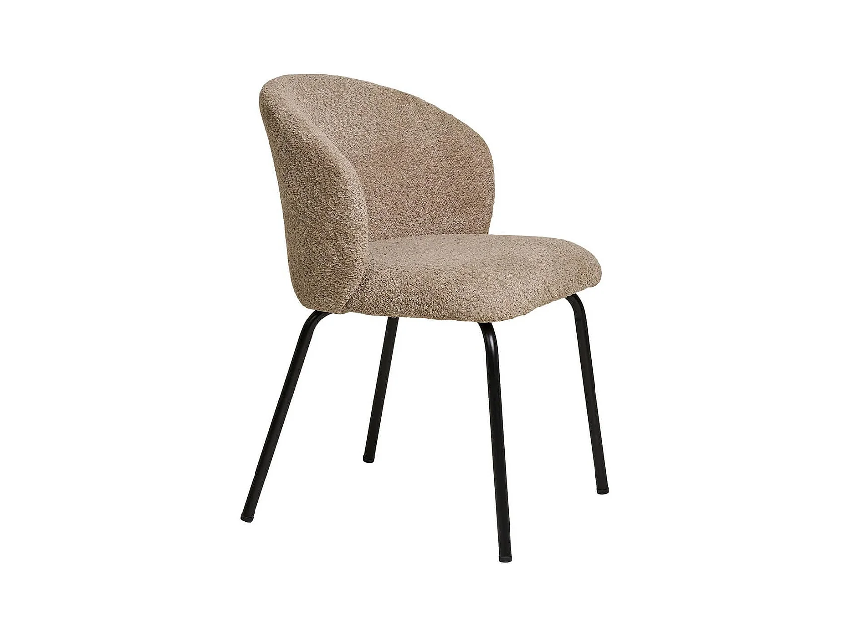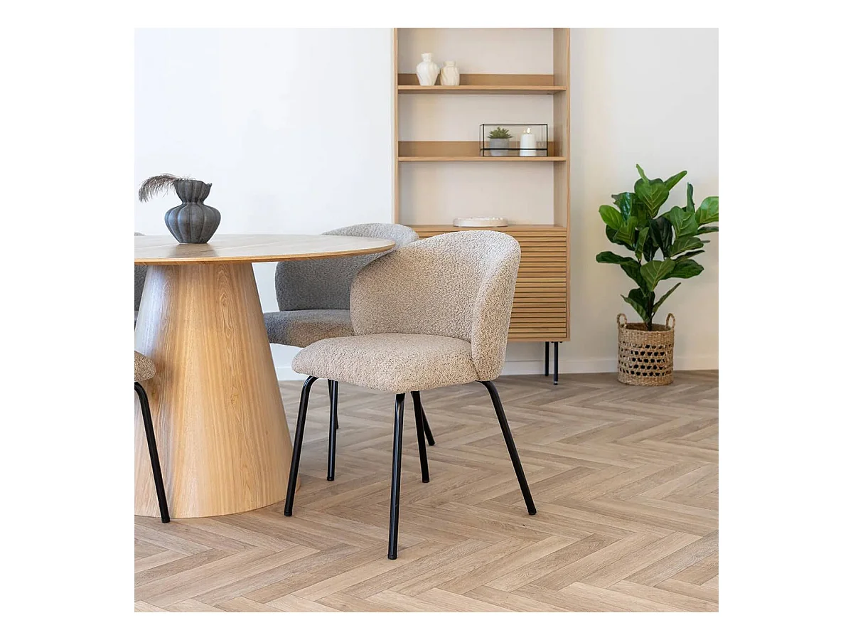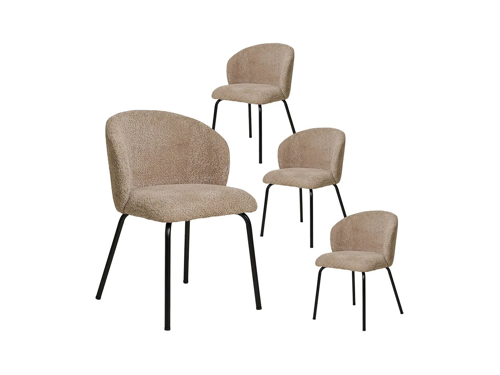 DALIDA - Lot de 4 Chaises Incurvées Tissu Bouclé Beige Pieds Métal Noir