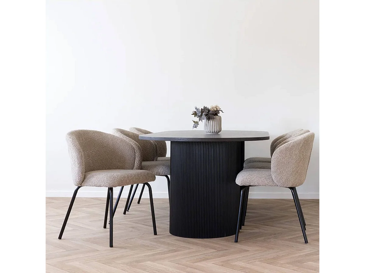 DALIDA - Lot de 6 Chaises Incurvées Tissu Bouclé Beige Pieds Métal Noir