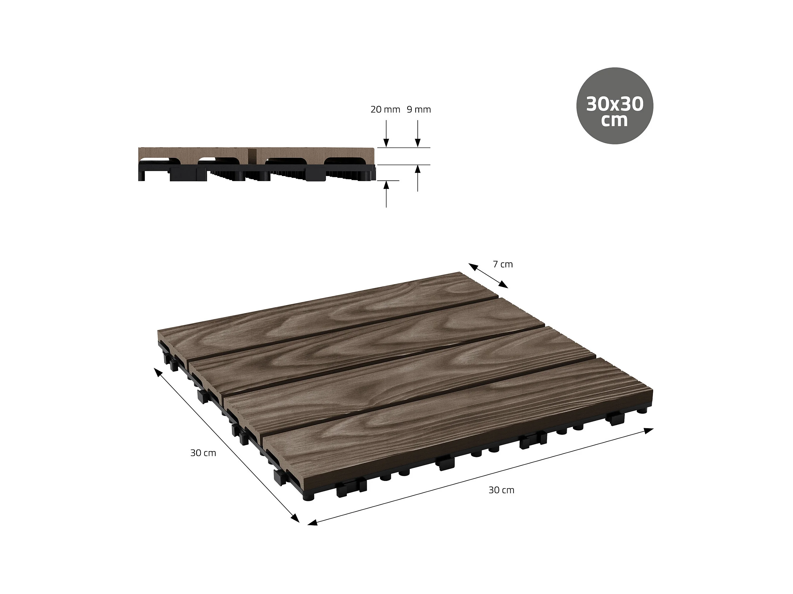 Dalles de terrasse WPC 30x30cm 33 pièces 3m² marron foncé aspect bois système clipsable drainage antidérapant intérieur extérieur revêtement de sol