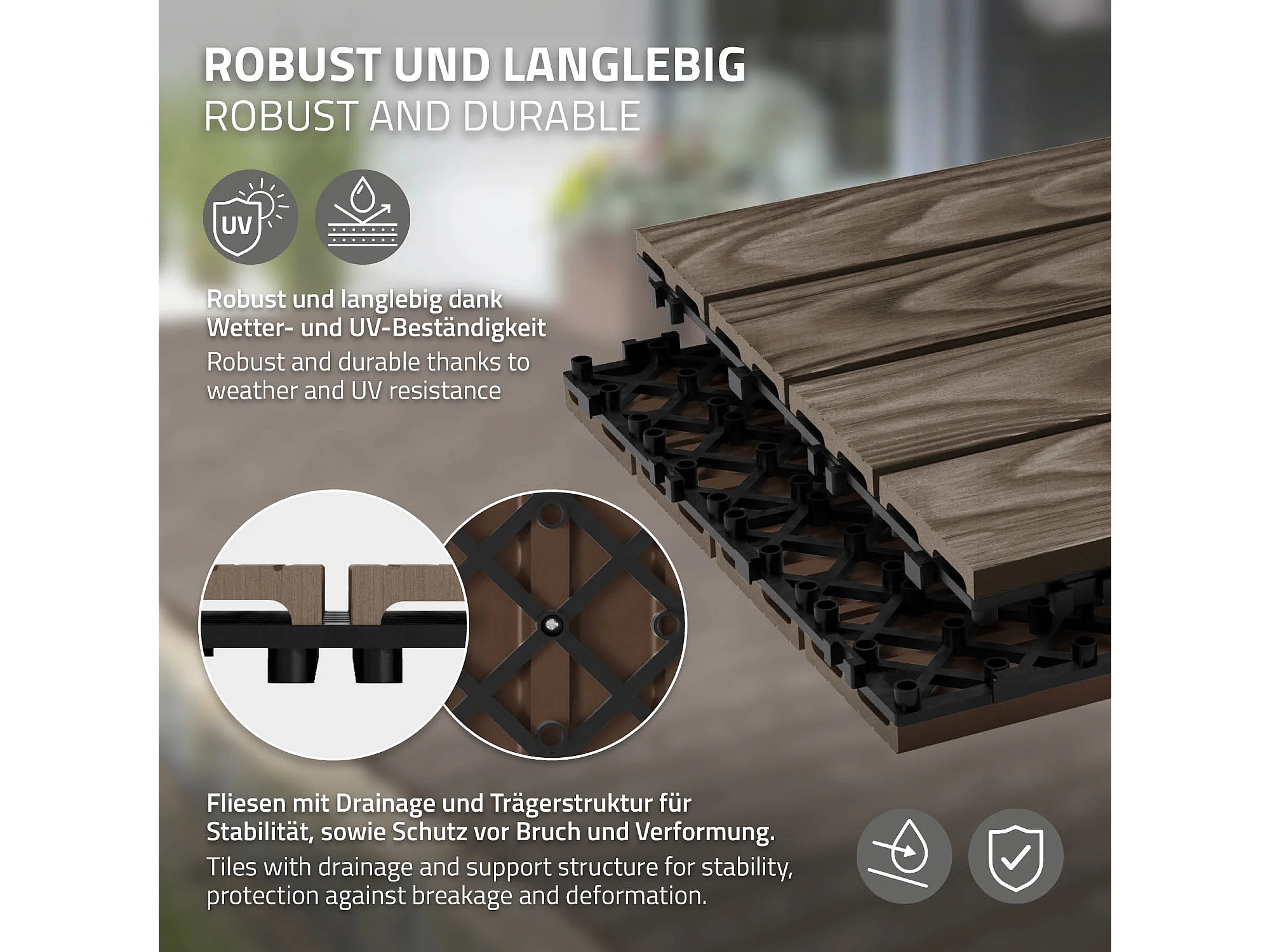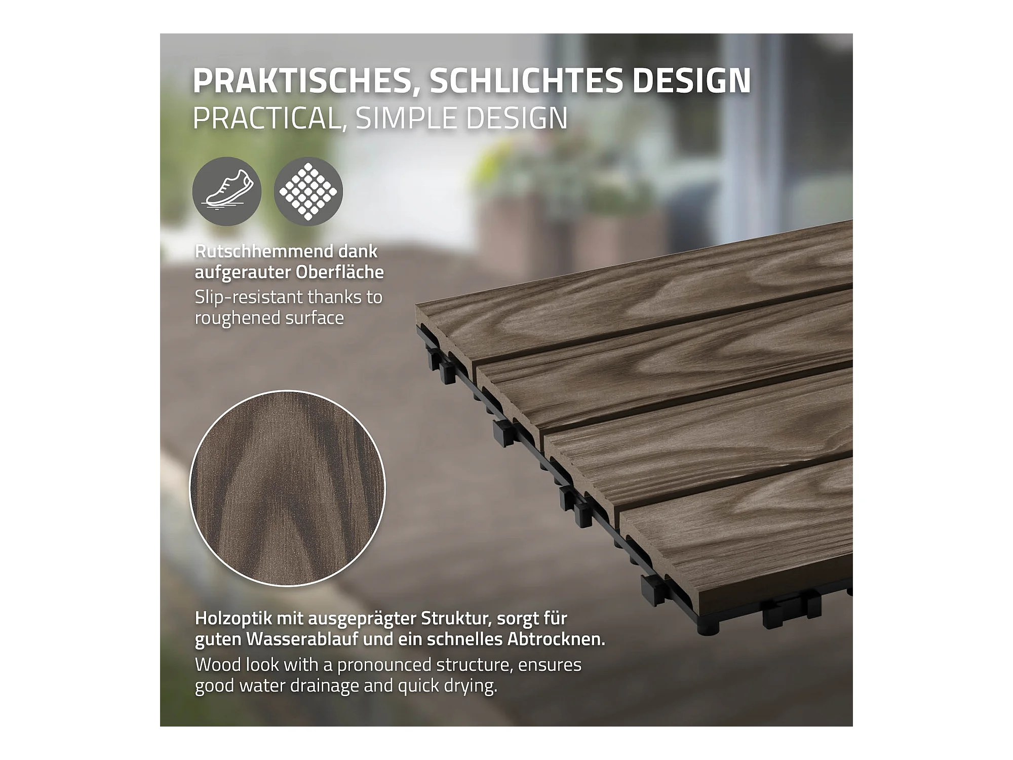 Dalles de terrasse WPC 30x30cm 55 pièces 5m² marron foncé aspect bois système clipsable drainage antidérapant intérieur extérieur revêtement de sol