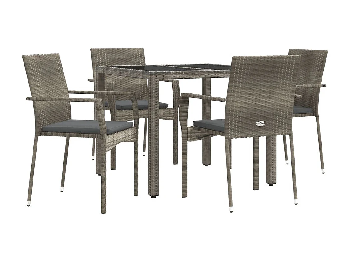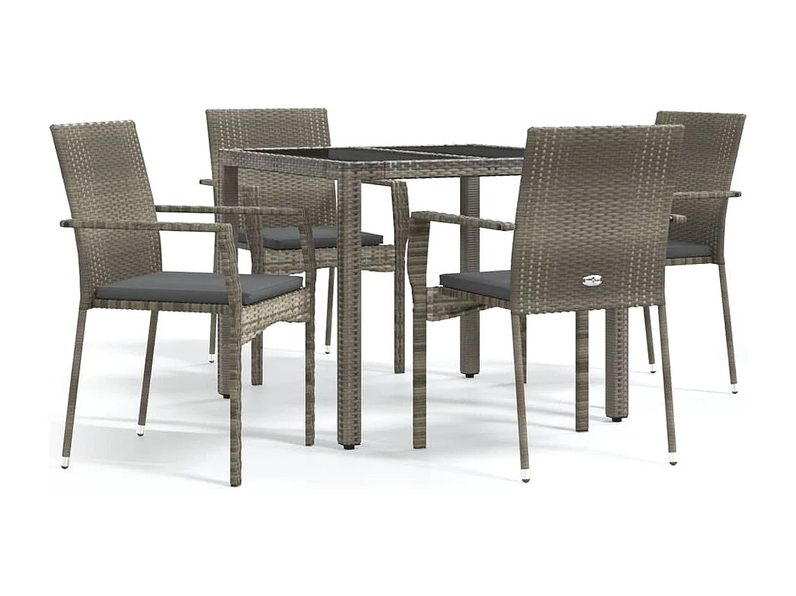 Daniela Patricia Ensemble à manger de jardin 5 pcs coussins gris résine tressée