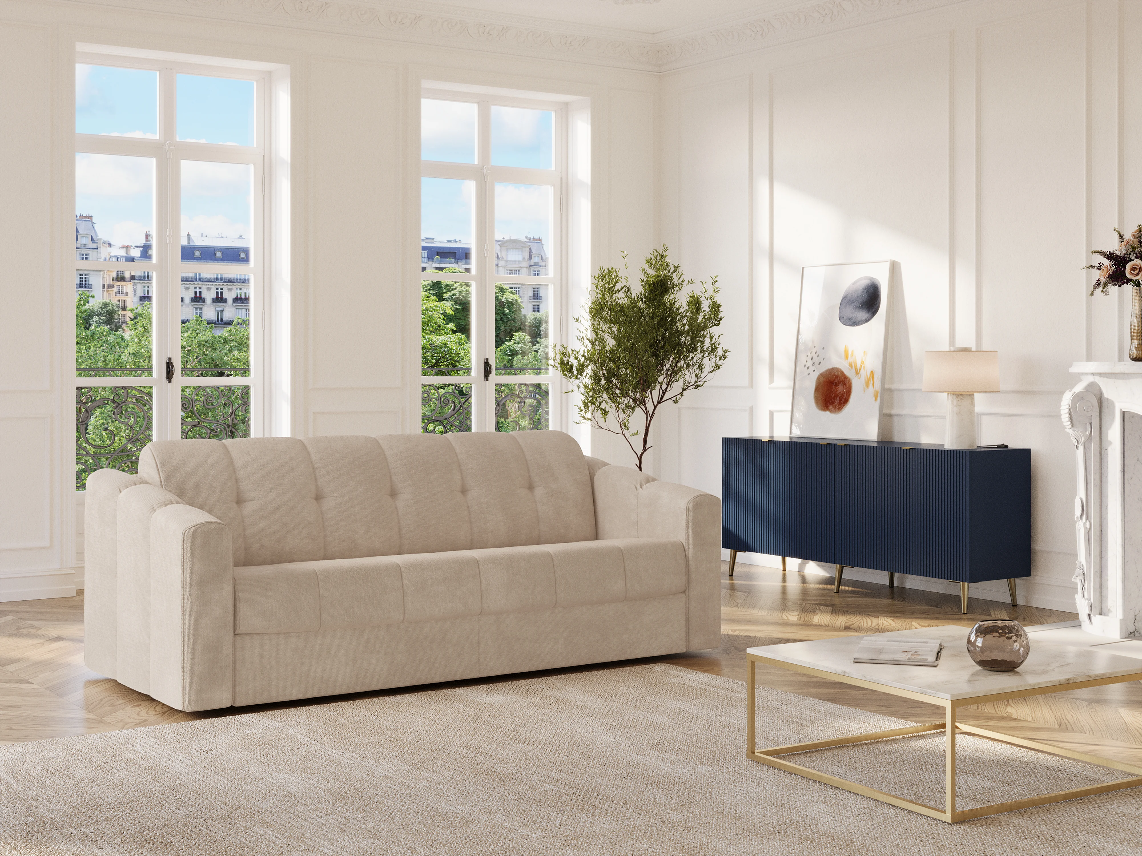 Canapé 3 places convertible express en tissu texturé beige - Couchage 140 cm - Matelas 22 cm avec mémoire de forme DARIELO