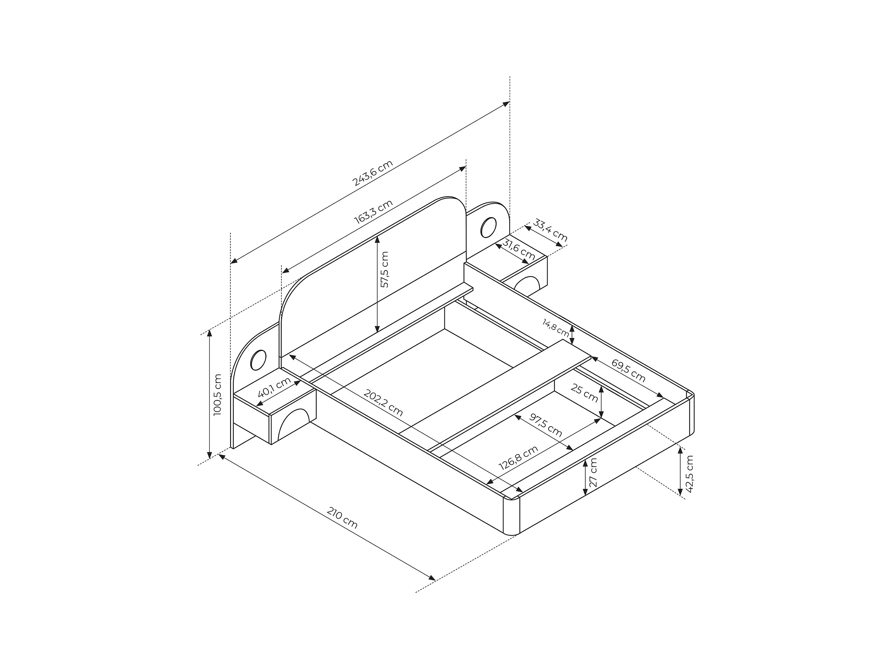 Lit coffre 160 x 200 cm - Avec chevets et LEDs - Coloris : Beige et Naturel + Matelas - DARTAGNO
