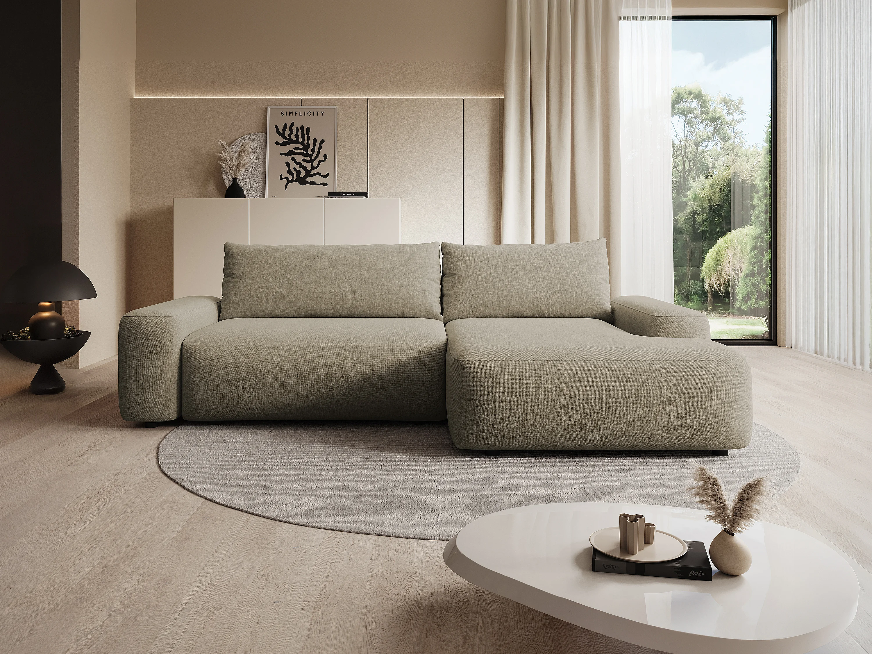 Canapé d'angle droit convertible en tissu texturé taupe DAVISO