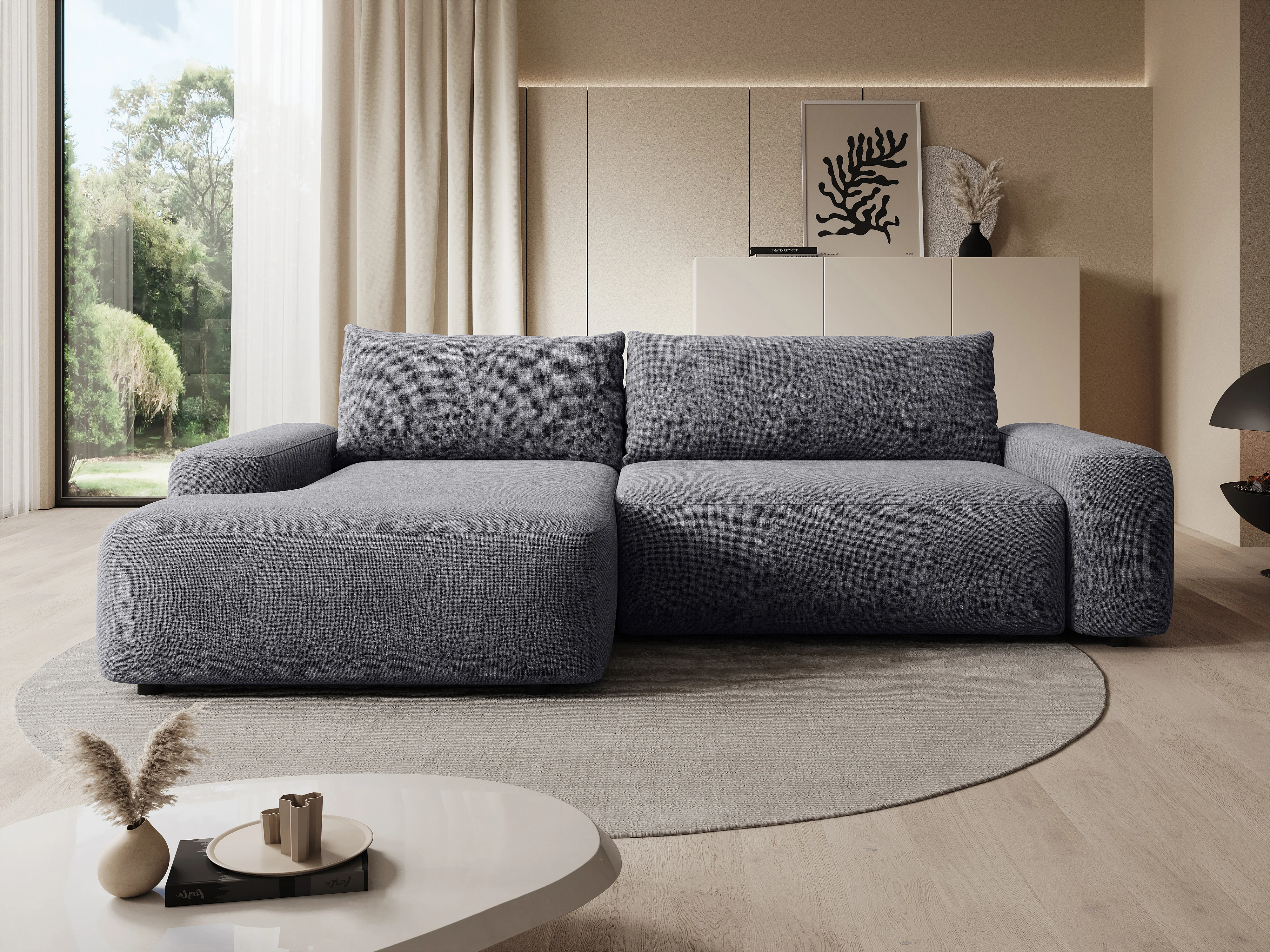 Canapé d'angle gauche convertible en tissu texturé gris DAVISO