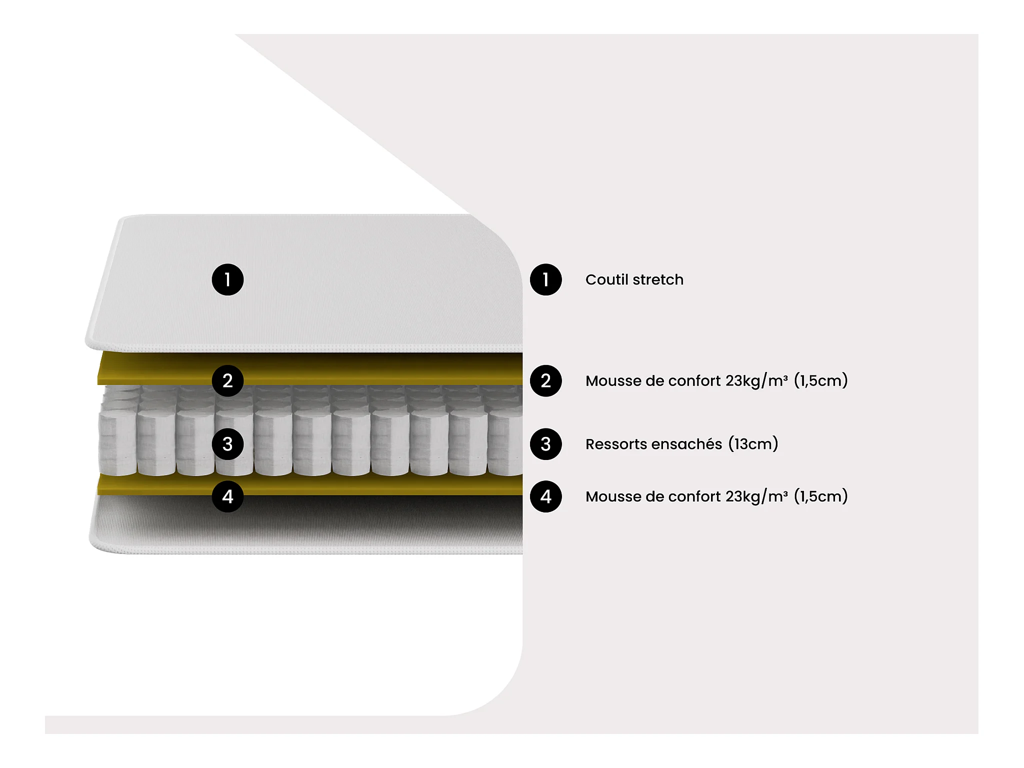 Ensemble 160 x 200 cm sommier coffre blanc + matelas ressorts ensachés ép.19cm - DAYNI de YSMÉE