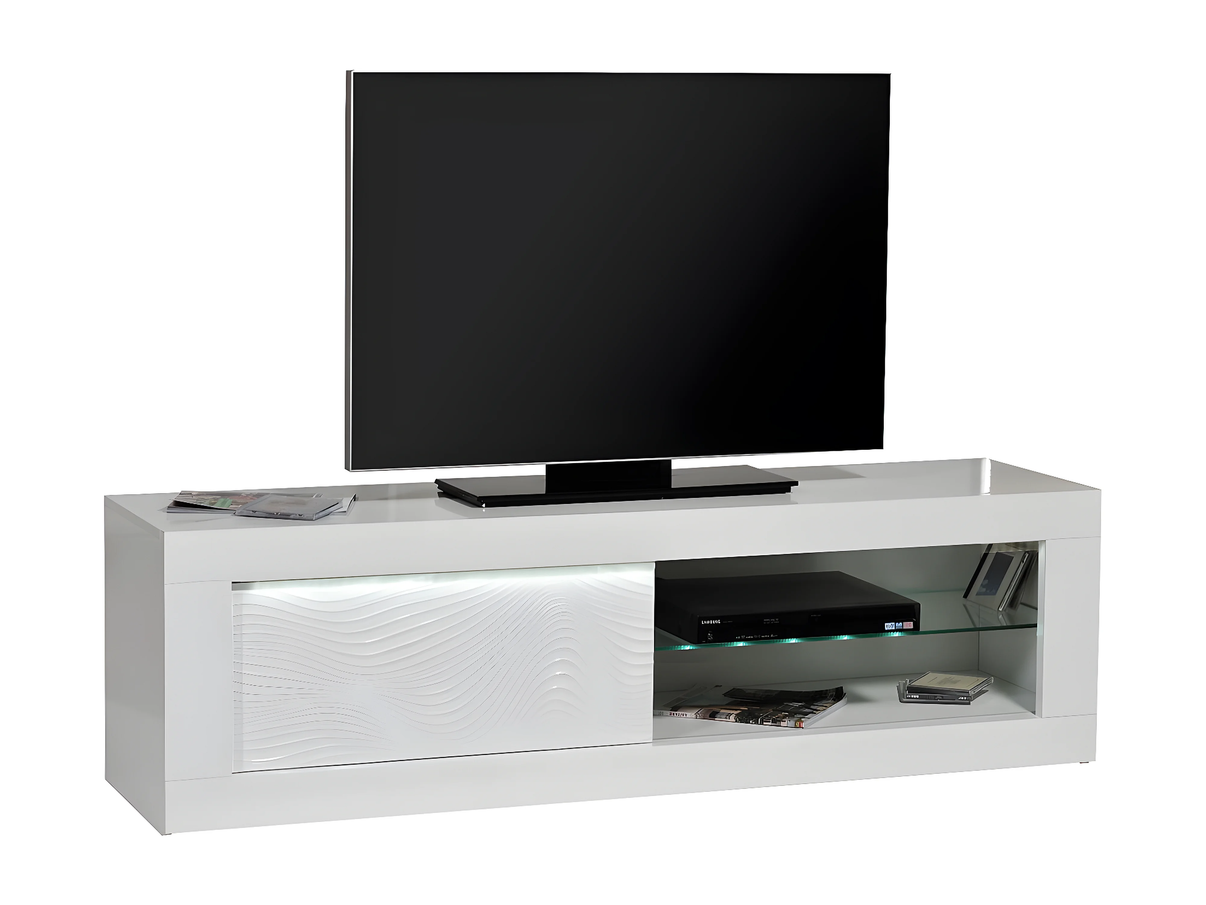 DAYTON WHITE - Meuble TV Laqué Blanc Porte Coulissante et Leds