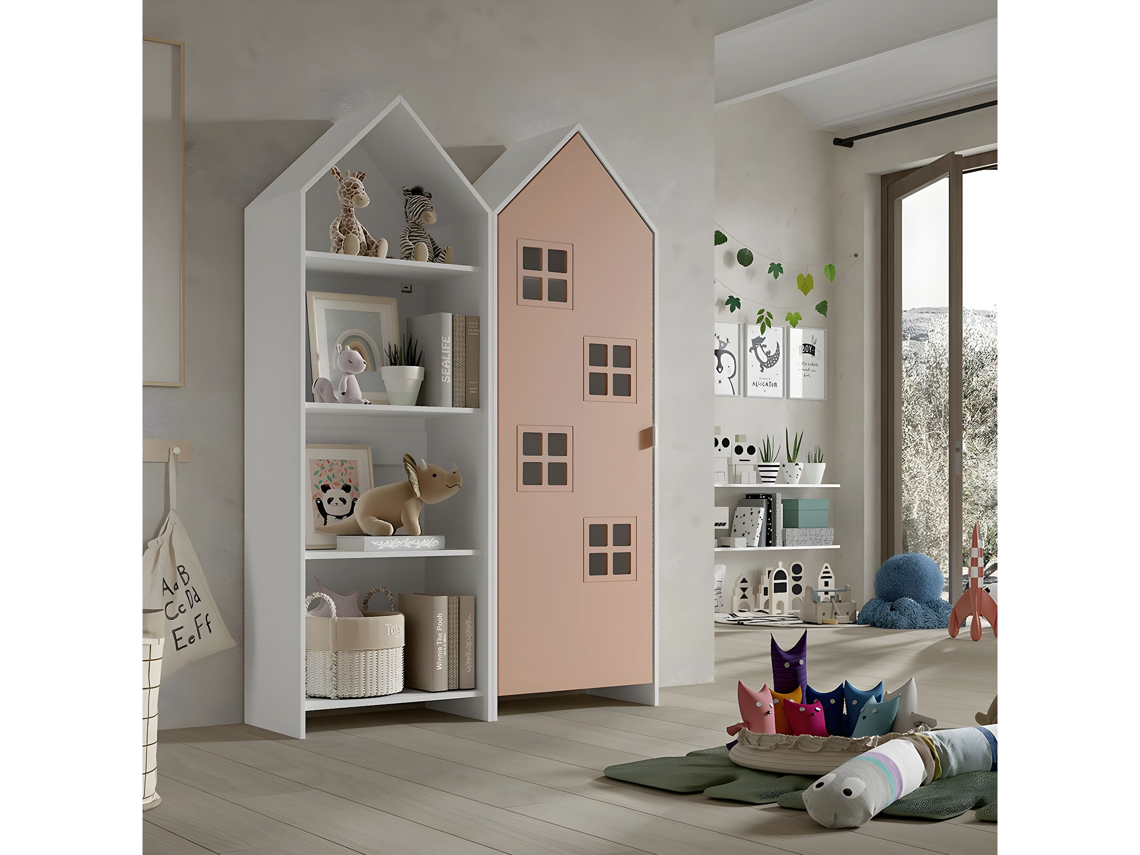 BEAUVILLE - Pack Bibliothèque + Armoire Cabane 1 Porte Rose
