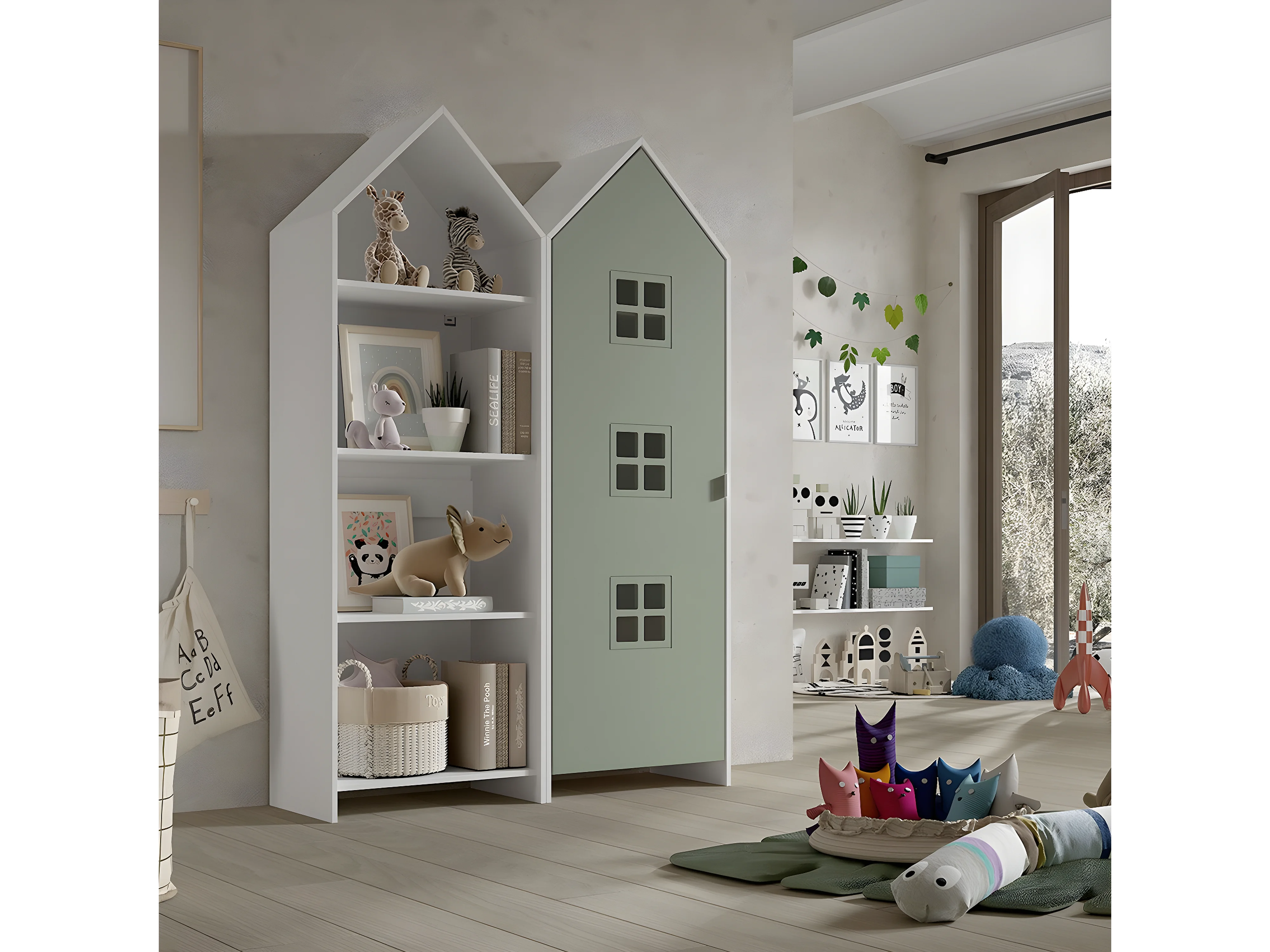 BEAUVILLE - Pack Bibliothèque + Armoire Cabane 1 Porte Verte