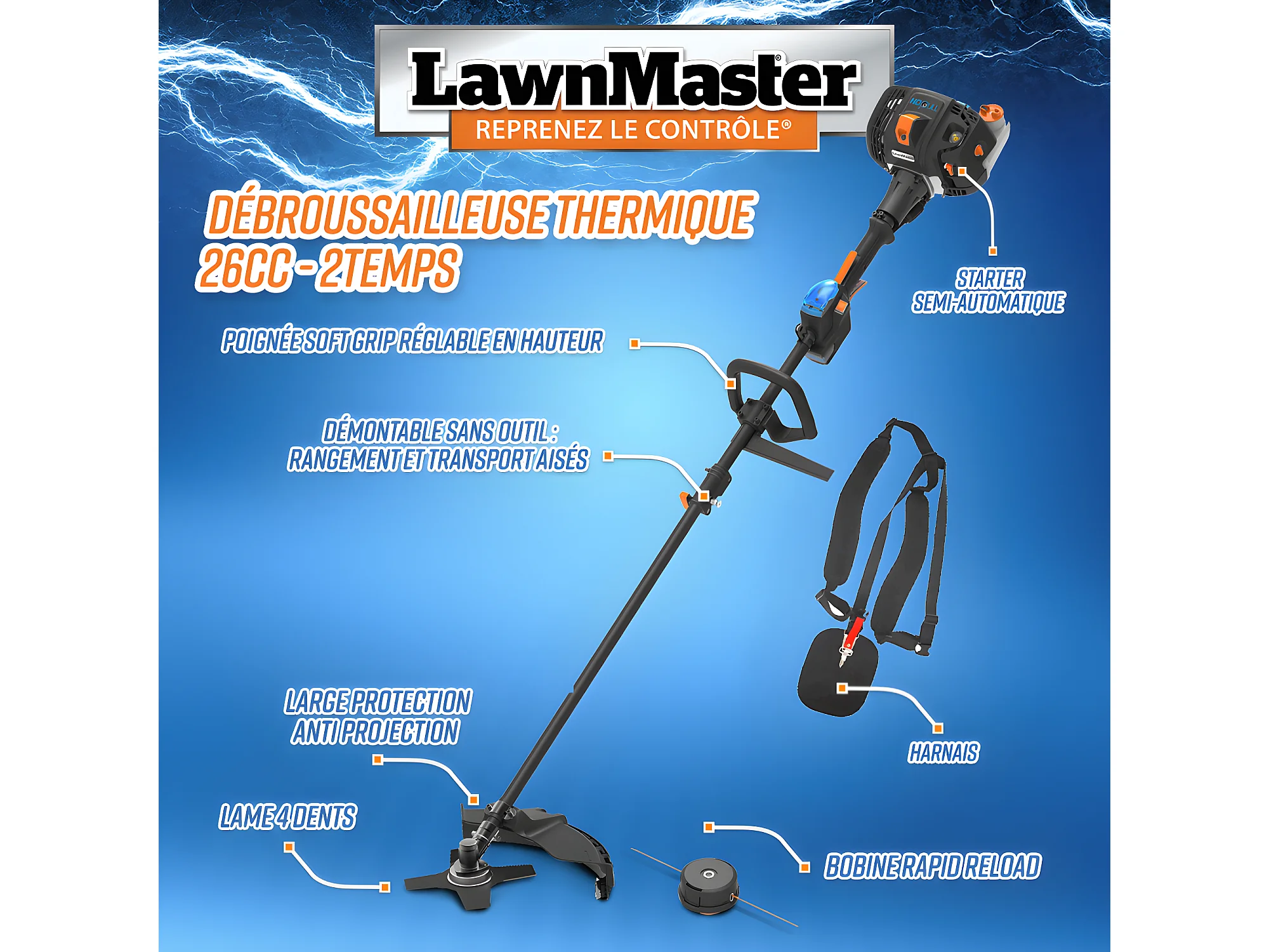 Débroussailleuse thermique 26cc avec démarrage électrique - Lawnmaster