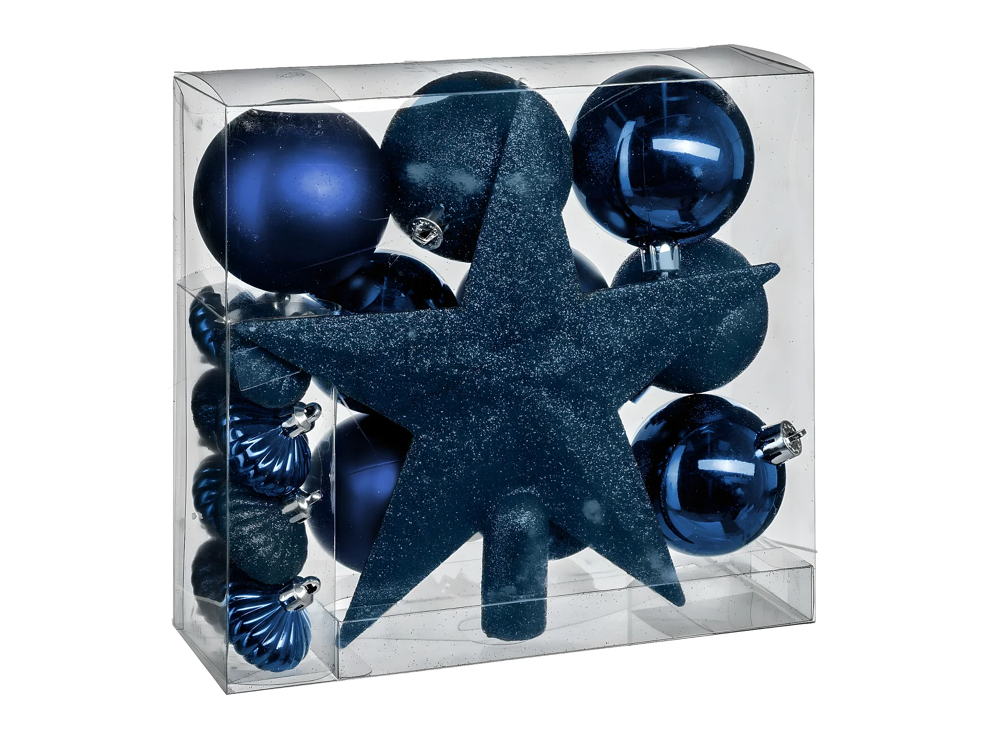 Déco de sapin de Noël Kit de 18 pièces Boules et Cimier - Bleu