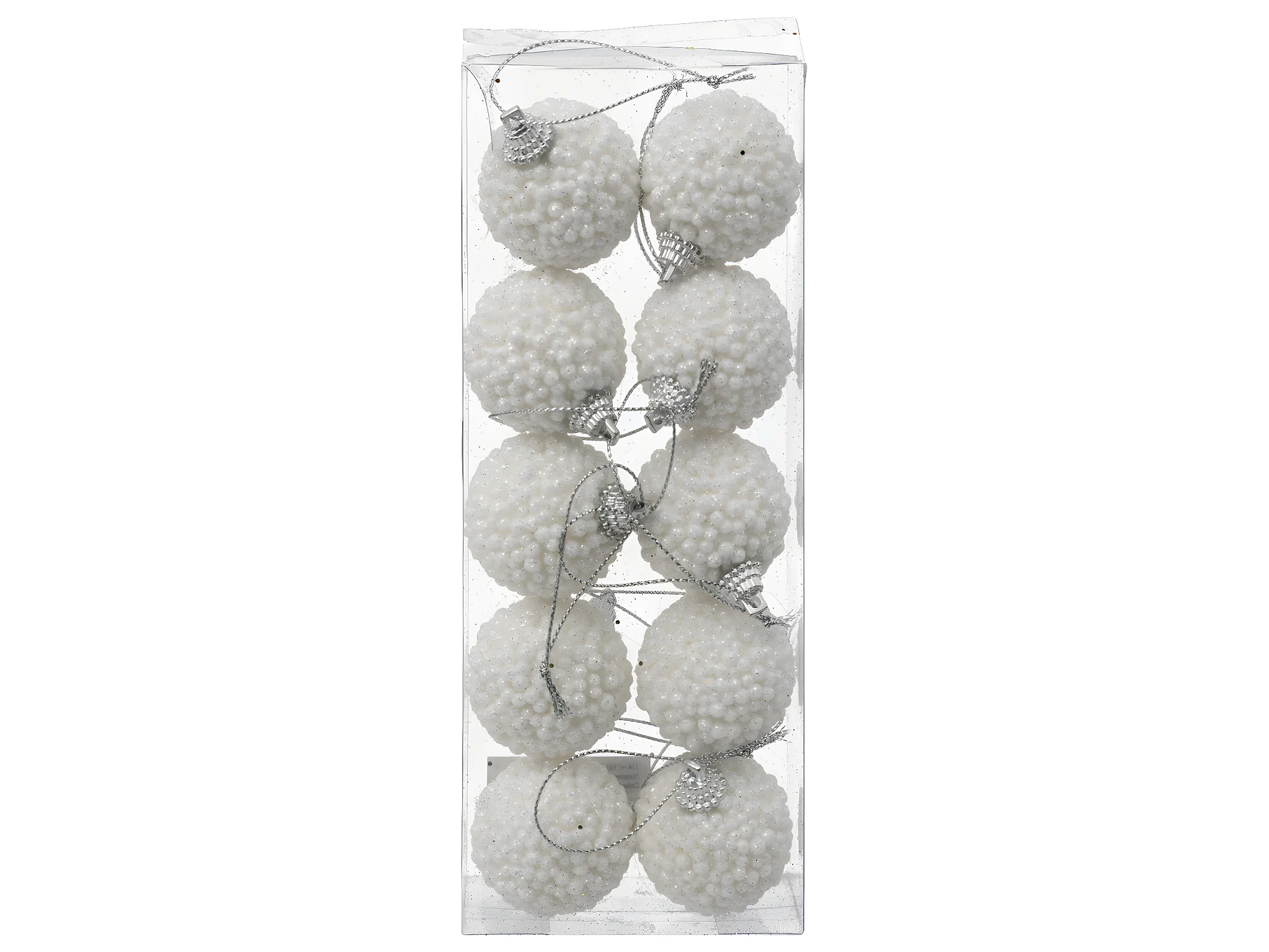 Déco de Sapin Kit 10 Boules de Noël D 4 cm Bille Blanc pailleté