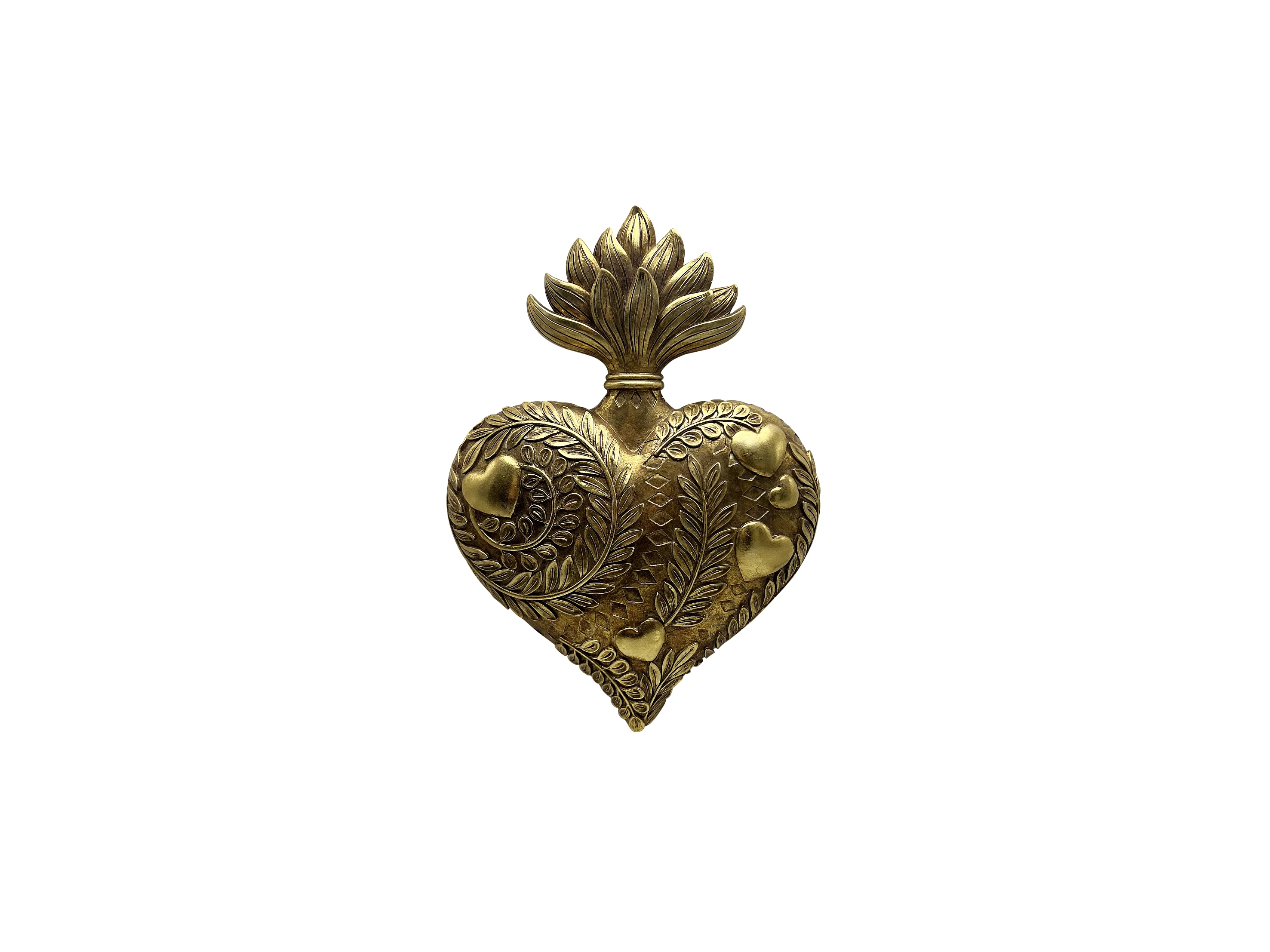 Déco murale ex-voto coeur soleil doré 25x25cm