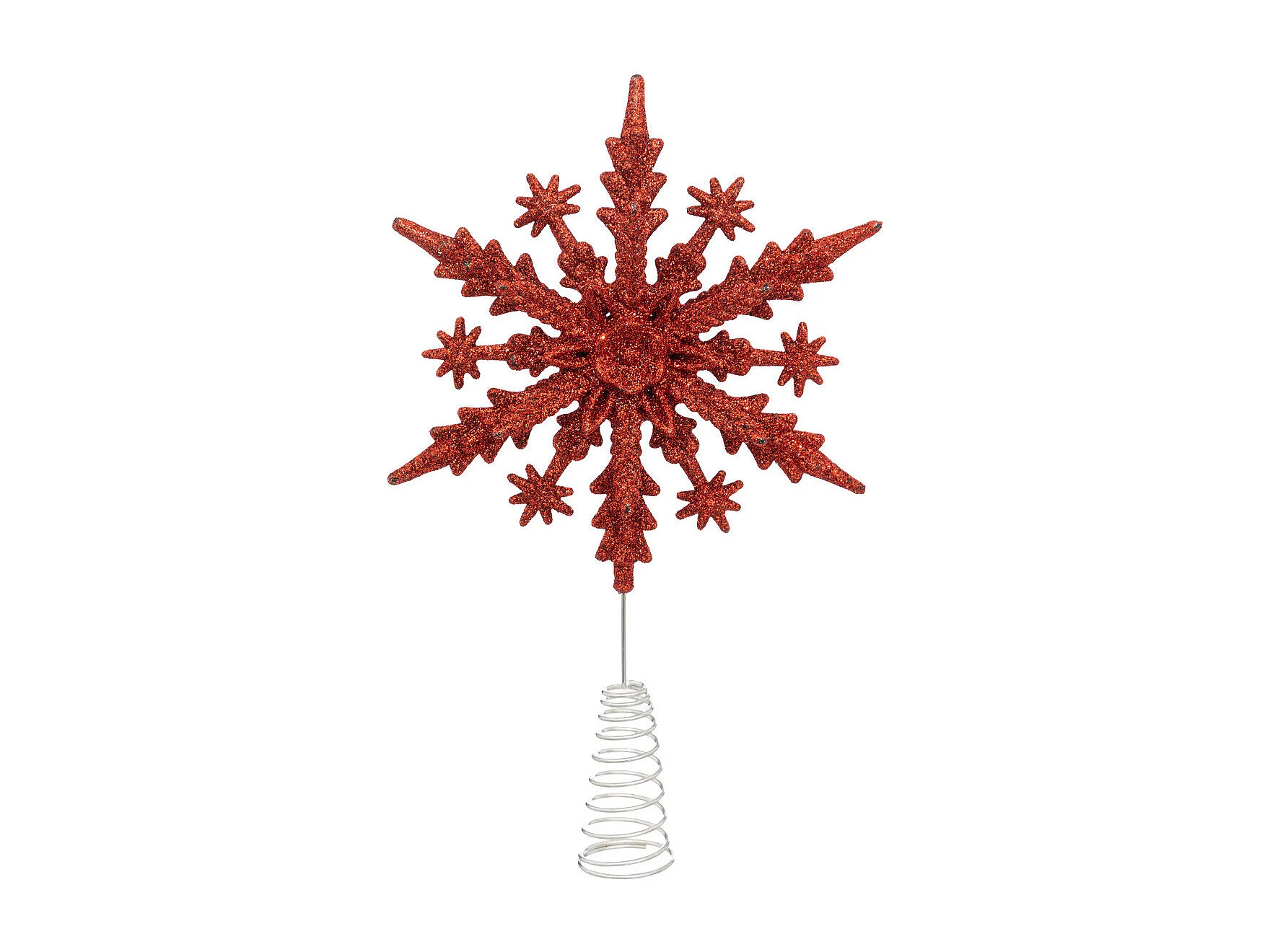 Déco Sapin de Noël Cimier Flocon en métal Rouge pailleté