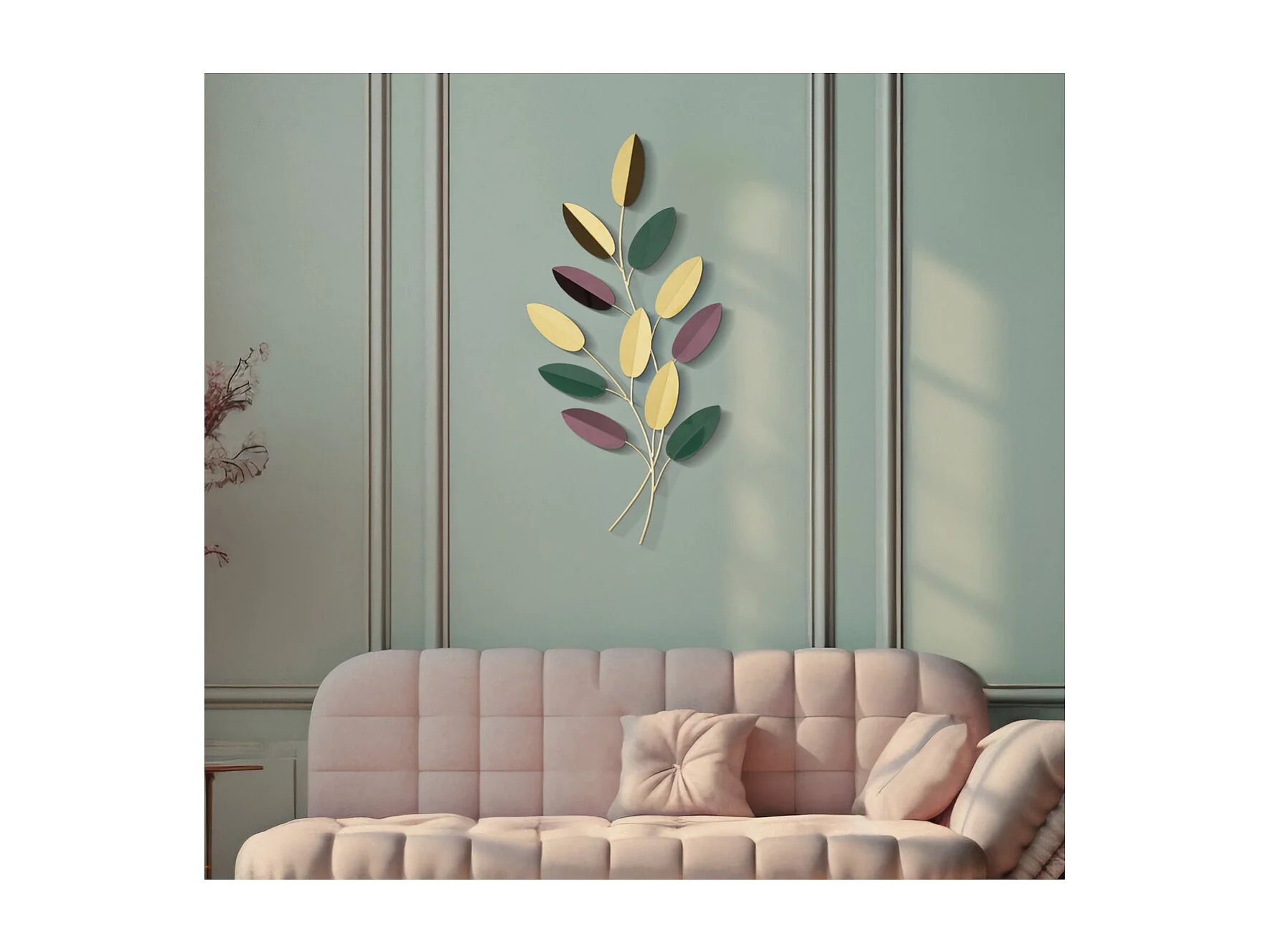 Décoration 3D en Métal Feuilles 2, Multicouleur, 31x1,9x61 cm, Seven Design