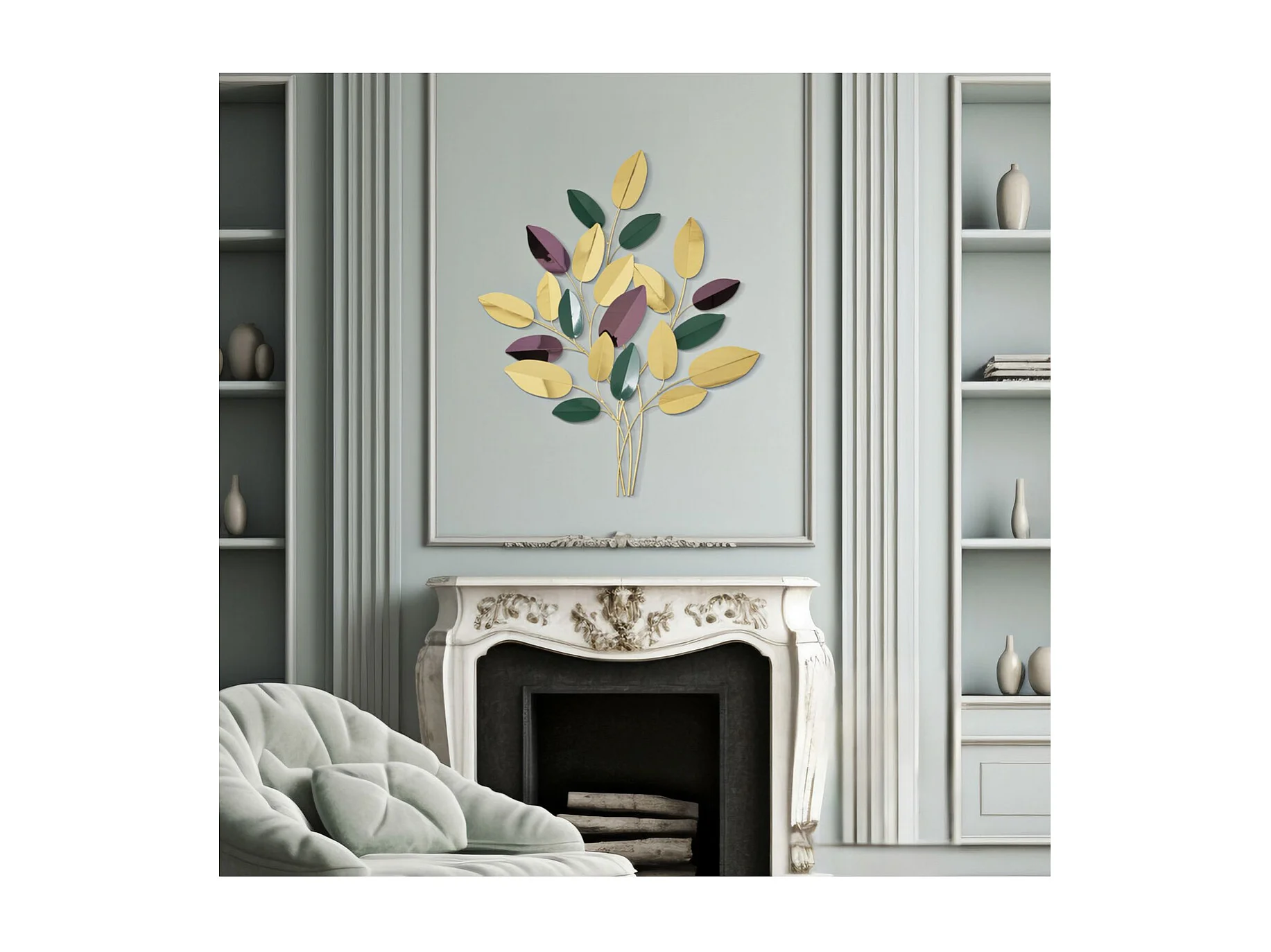 Décoration 3D en Métal Feuilles, Multicouleur, 81,9x3,8x97 cm, Seven Design