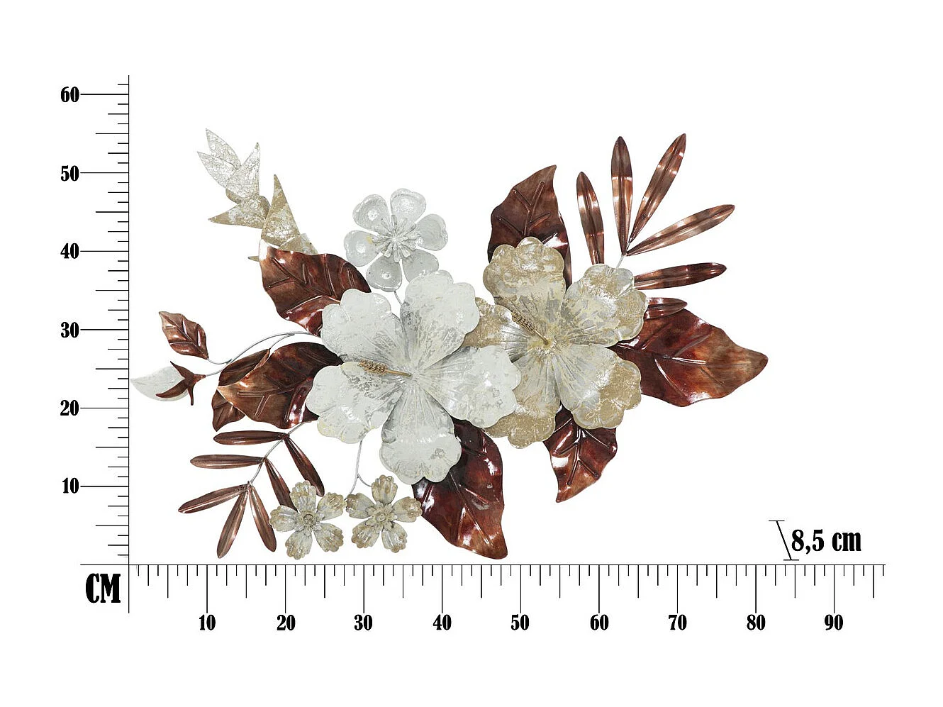 Décoration 3D en Métal Fleurs 27, Multicouleur, 83x8,5x55 cm, Seven Design