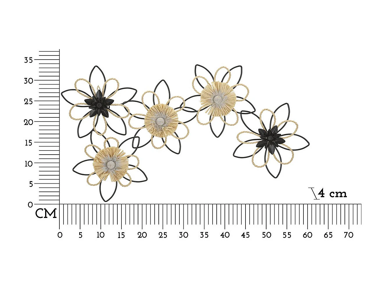 Décoration en Métal et Bois Fleurs 55, Marron, 60x2x90 cm, Seven Design
