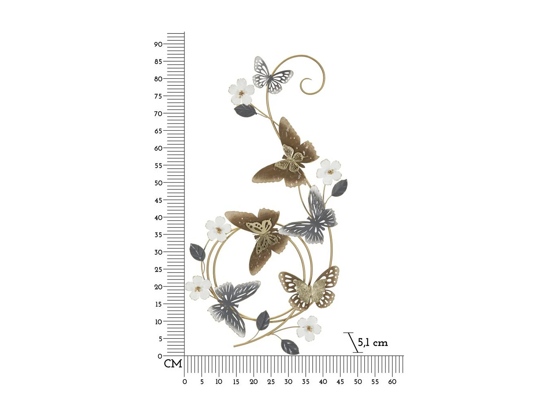 Décoration 3D en Métal Papillon 9, Multicouleur, 58,4x5,1x63,5 cm, Seven Design