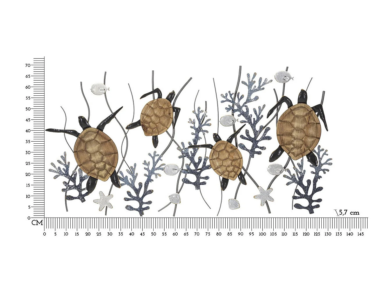 Décoration 3D en Métal Tortues, Multicouleur, 132,7x5,7x69,9 cm, Seven Design