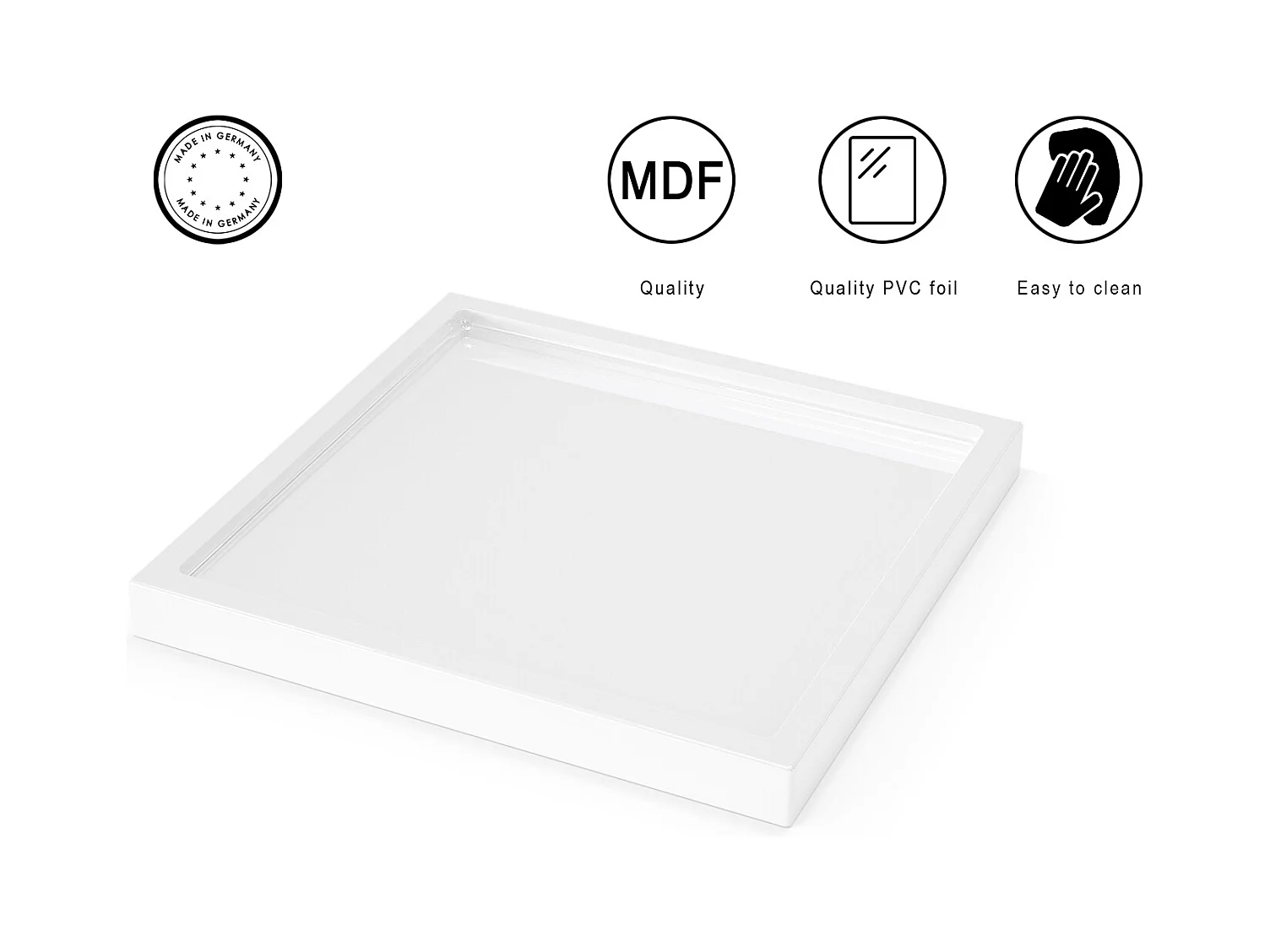 Décoration de table Maya, Plateau rectangulaire décoratif et moderne, Blanc haute brillance (20 x 1,8 x 20 cm)