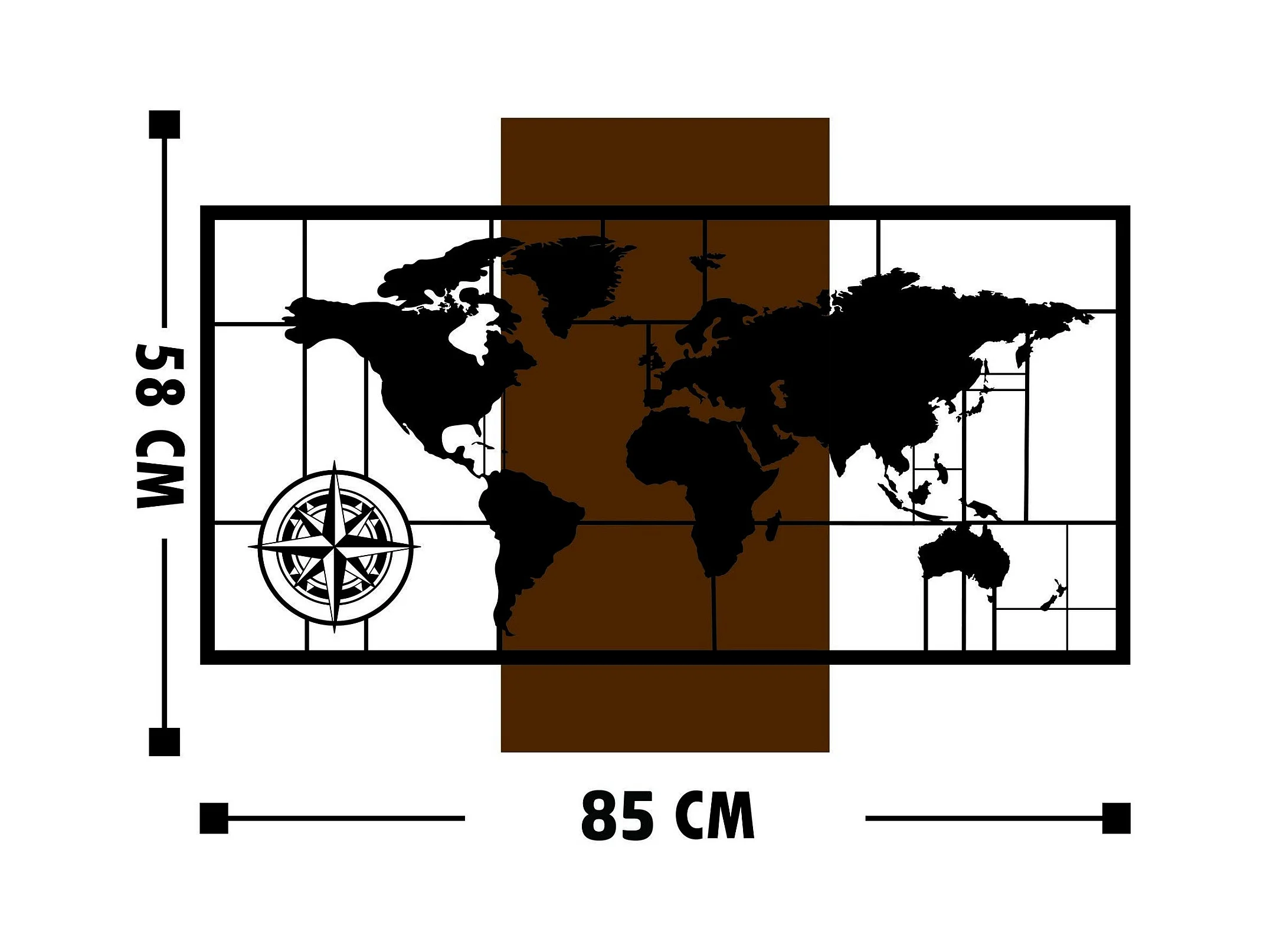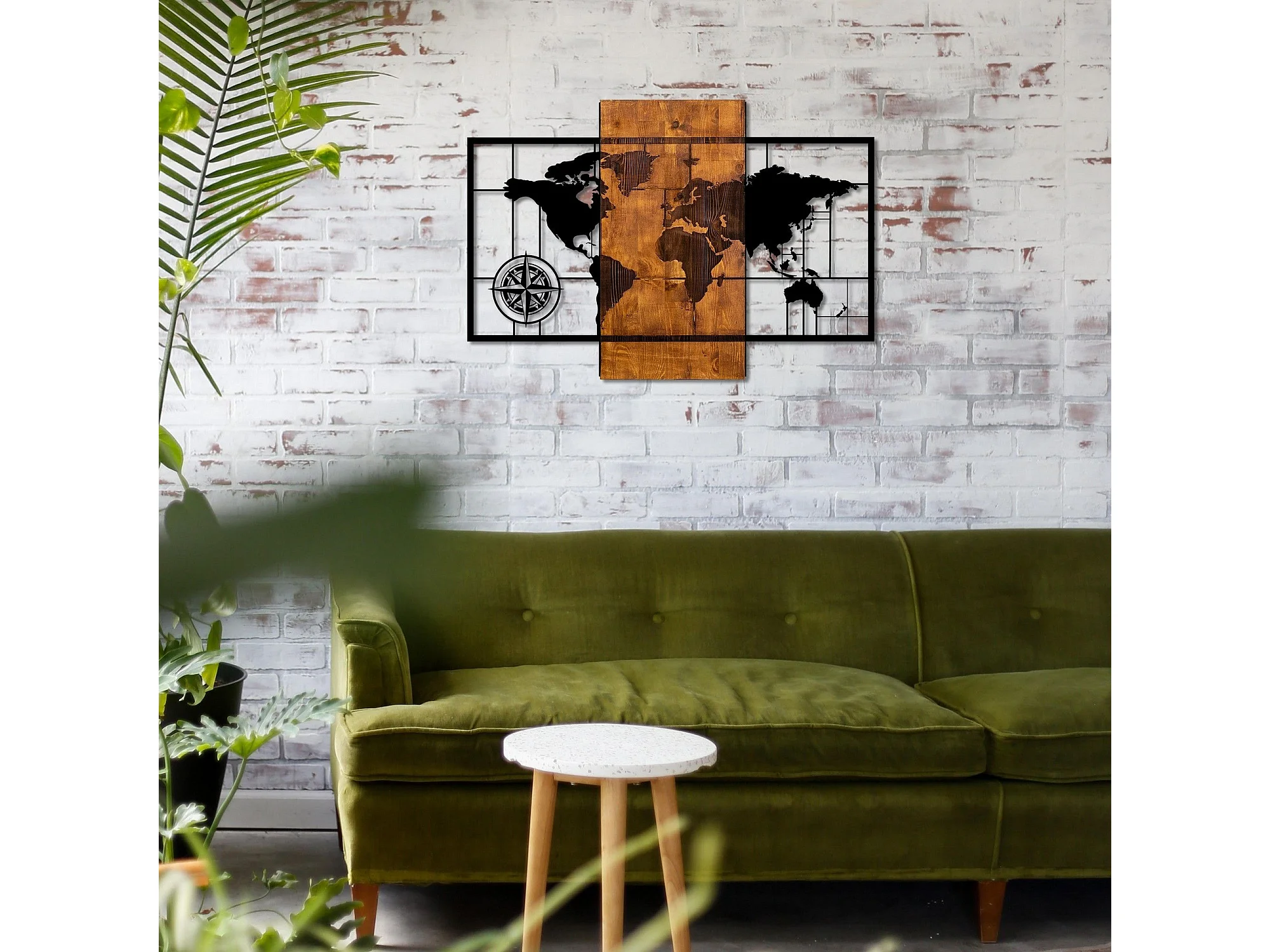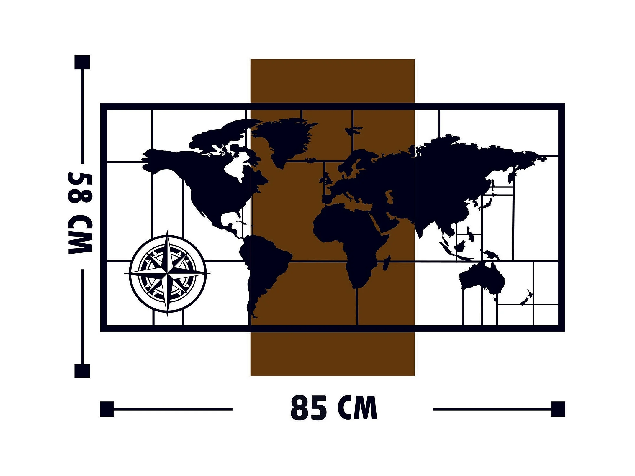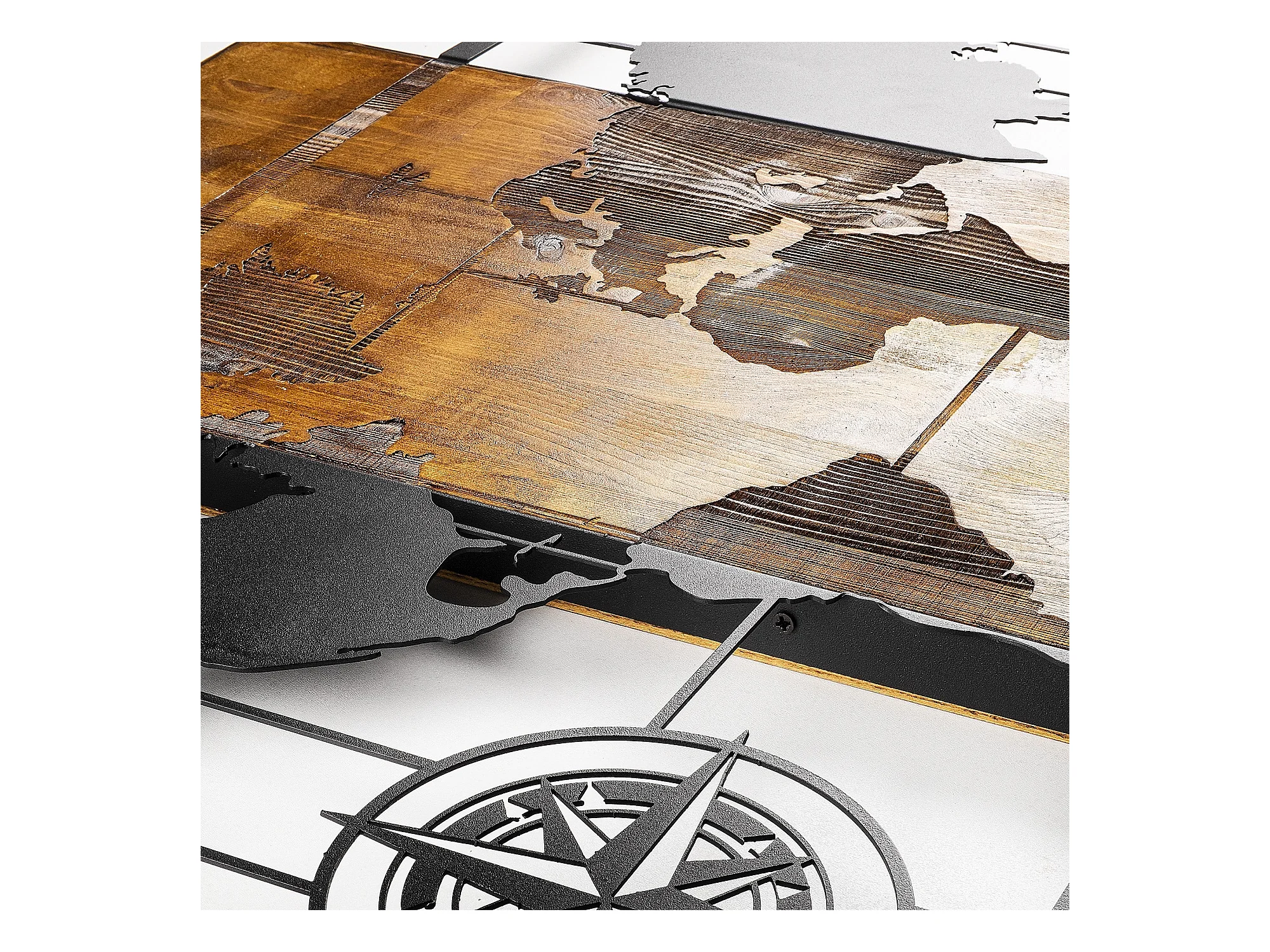 Décoration murale mappemonde points cardinaux Chiara L85xH58cm Métal Noir et Bois massif foncé