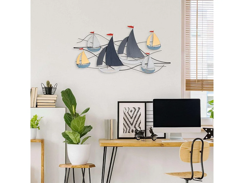 Décoration murale en métal et bois Notes de musique 90 x 47 cm