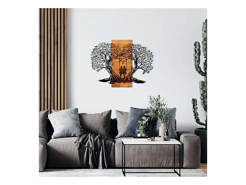 Décoration murale en métal et bois Arbre 72 x 58 cm