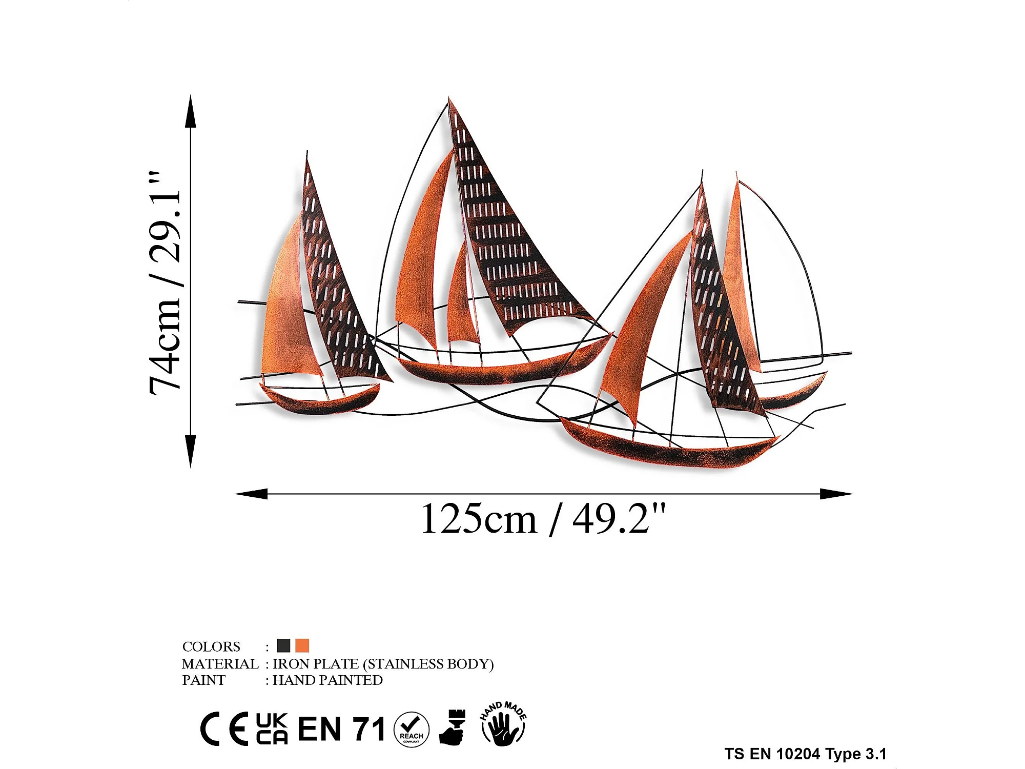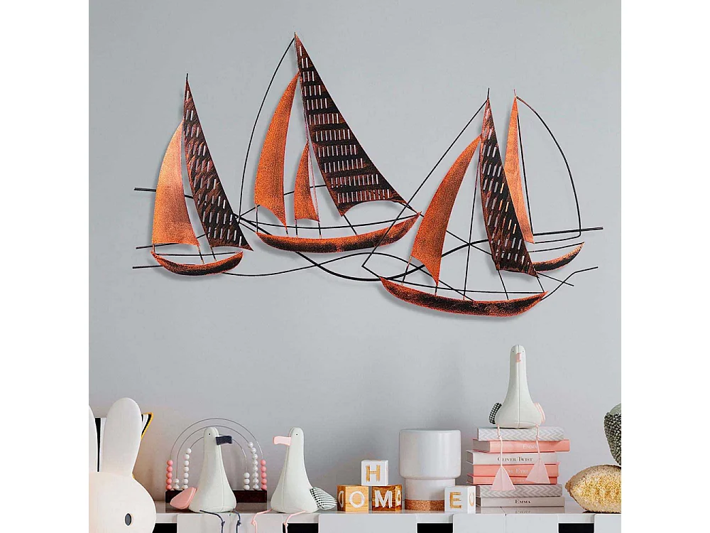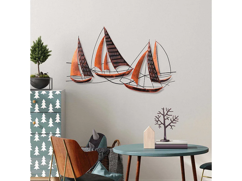 Décoration murale en métal - Mer Bateaux (effet rouille)