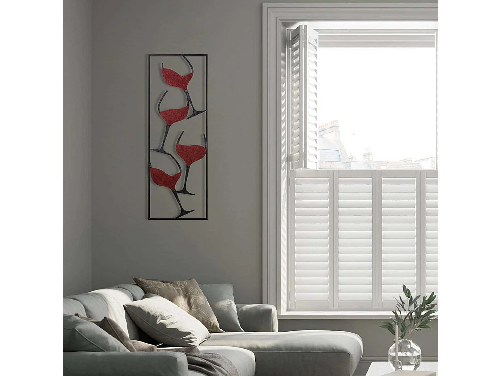 Décoration murale en métal Verres de vin noir
