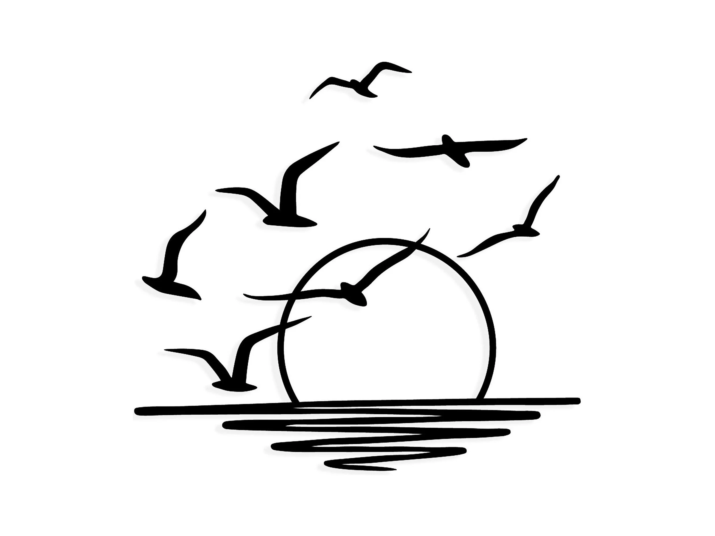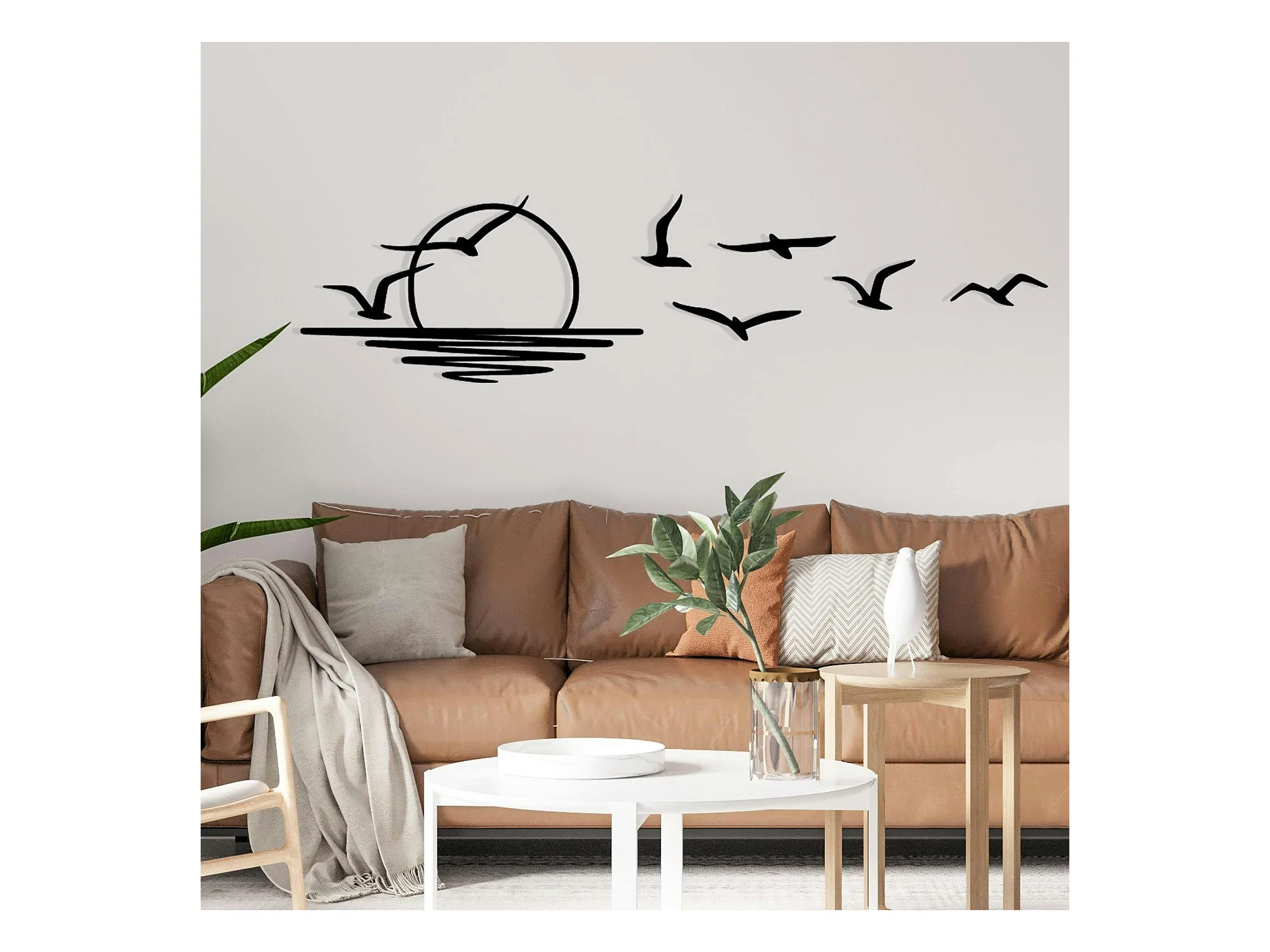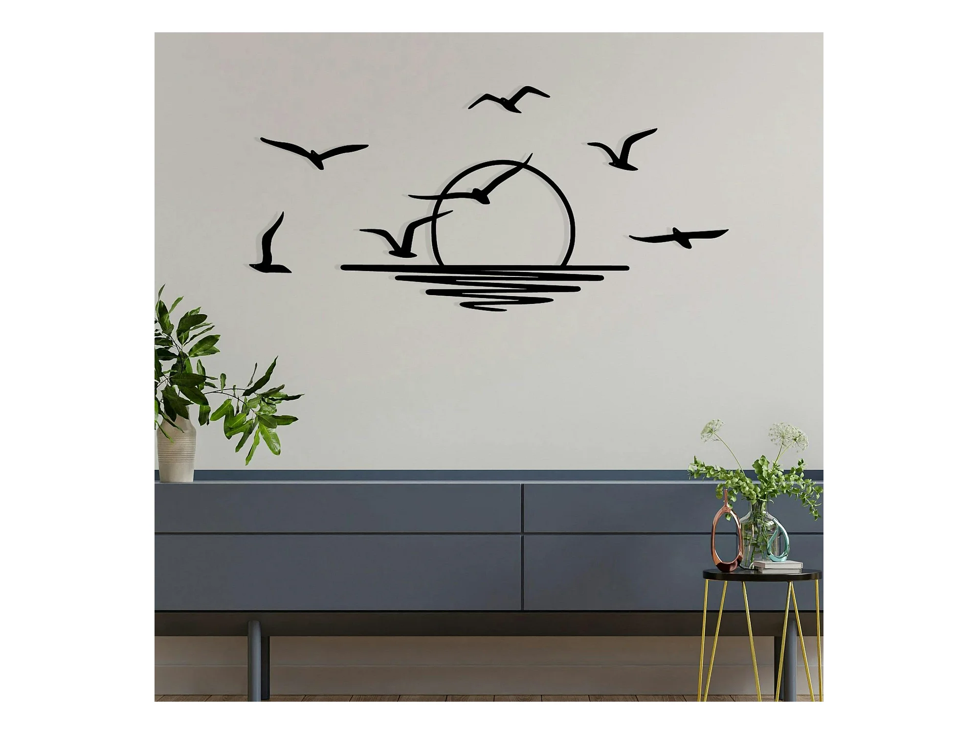 Décoration murale métal noir – coucher de soleil et oiseaux