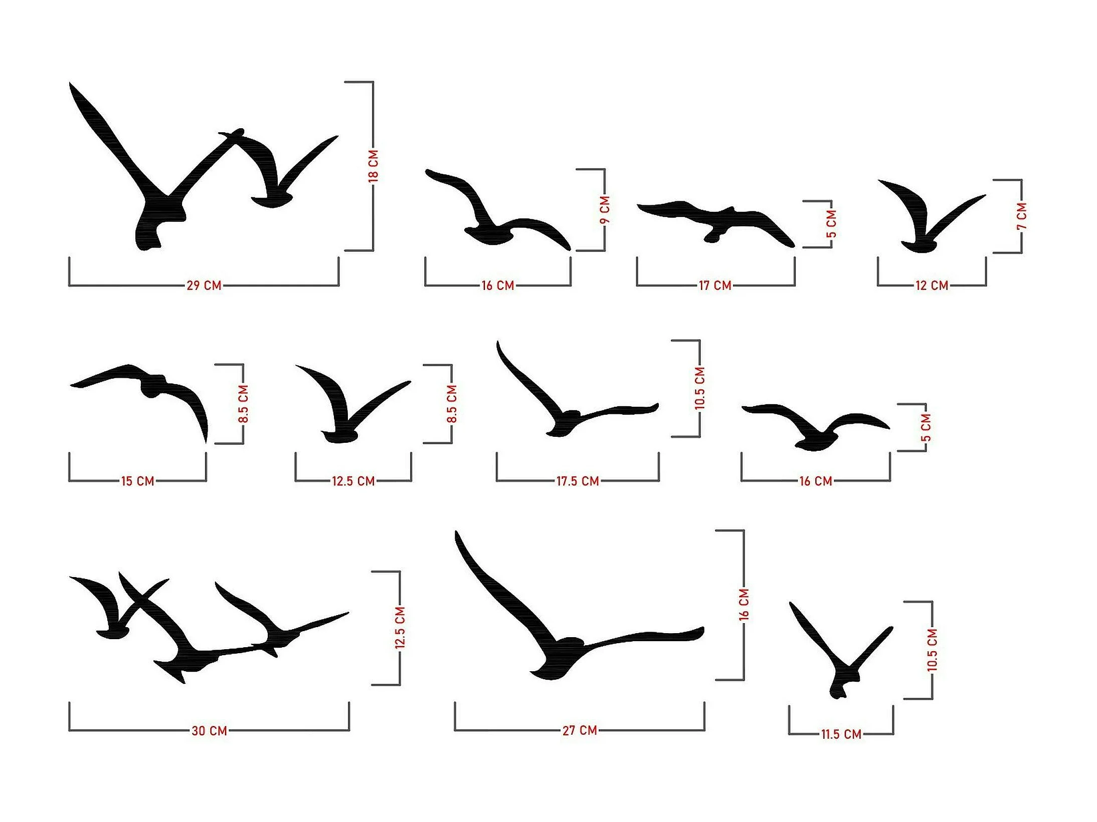 Décoration murale nature – oiseaux métal noir (lot de 11)