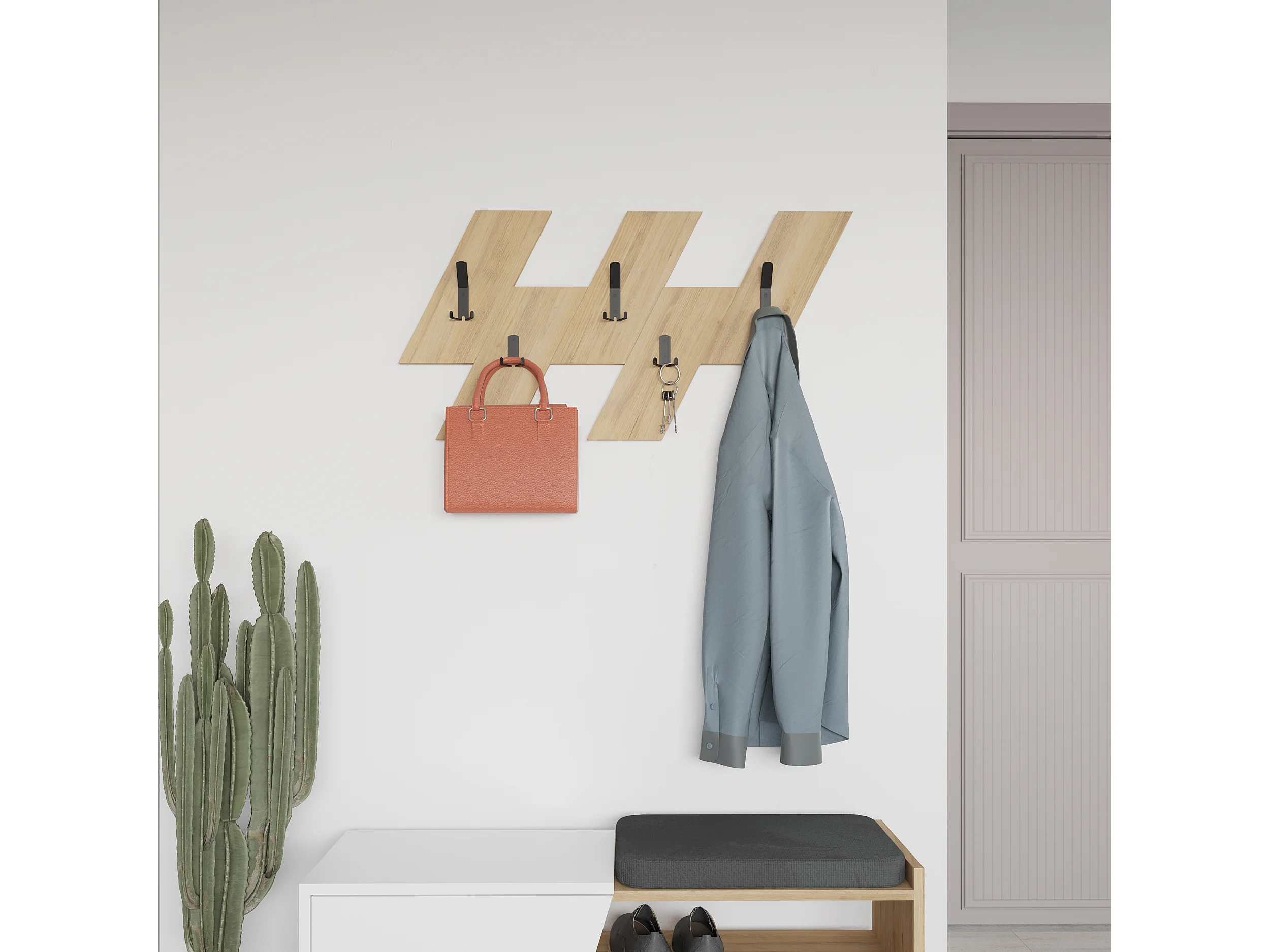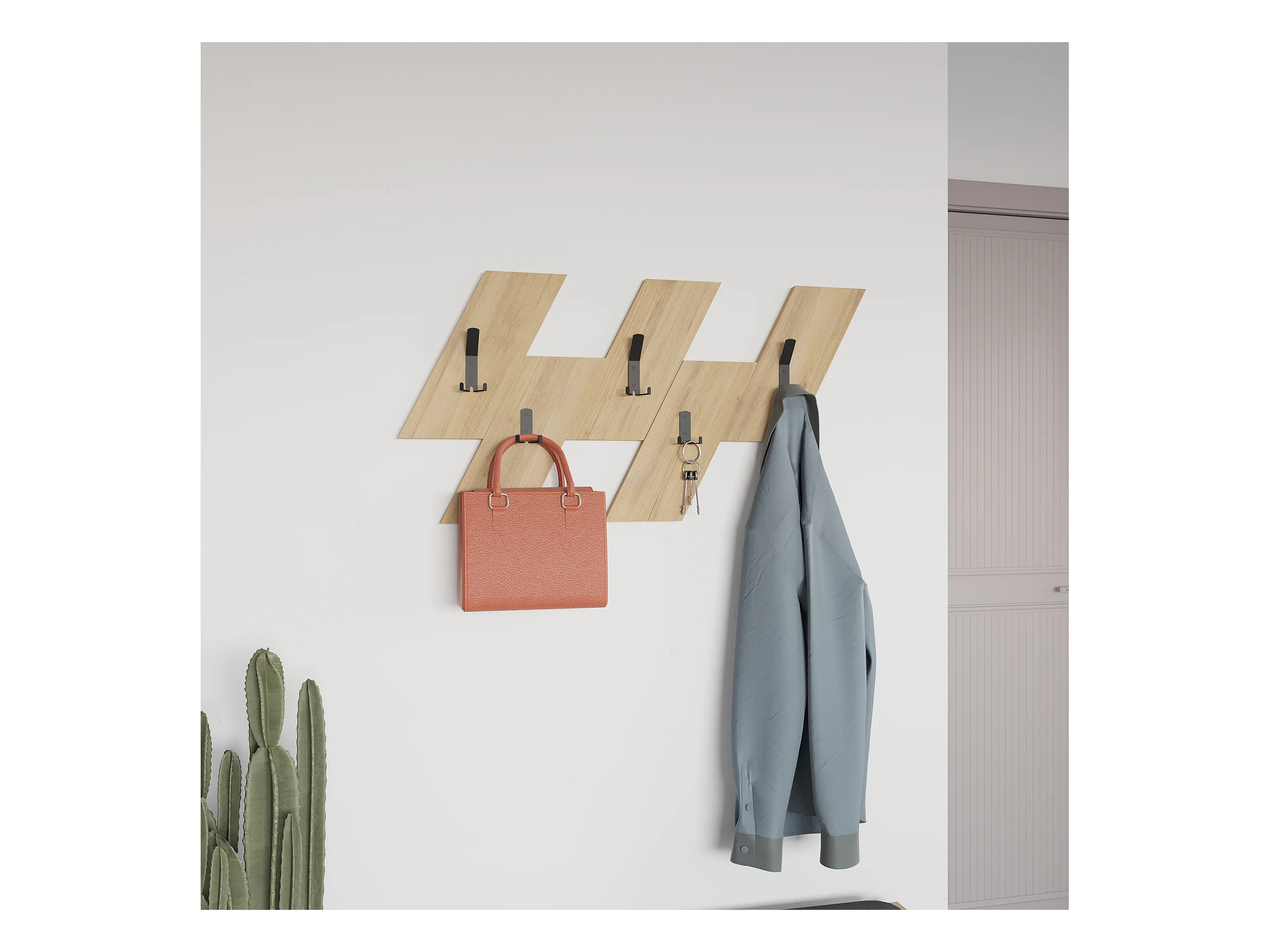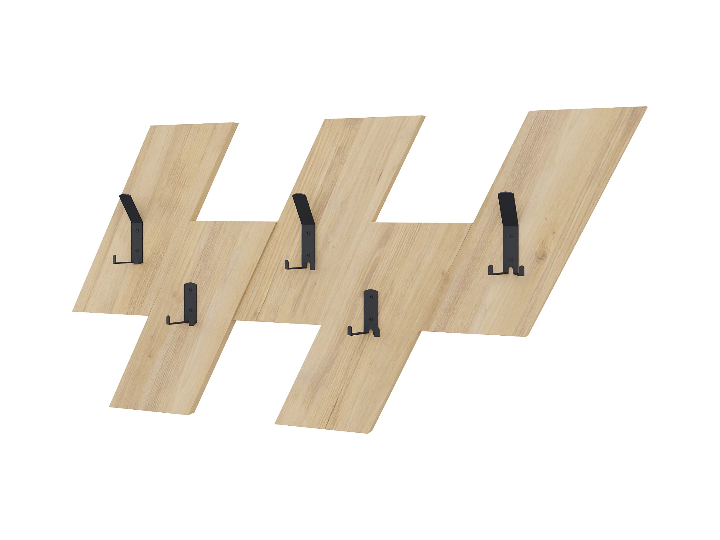 Decortie Chêne 1.8x75.2x45.3cm Porte-manteau mural avec 5 crochets, Panneau de particules, Métal Rangement d'étagère Livy