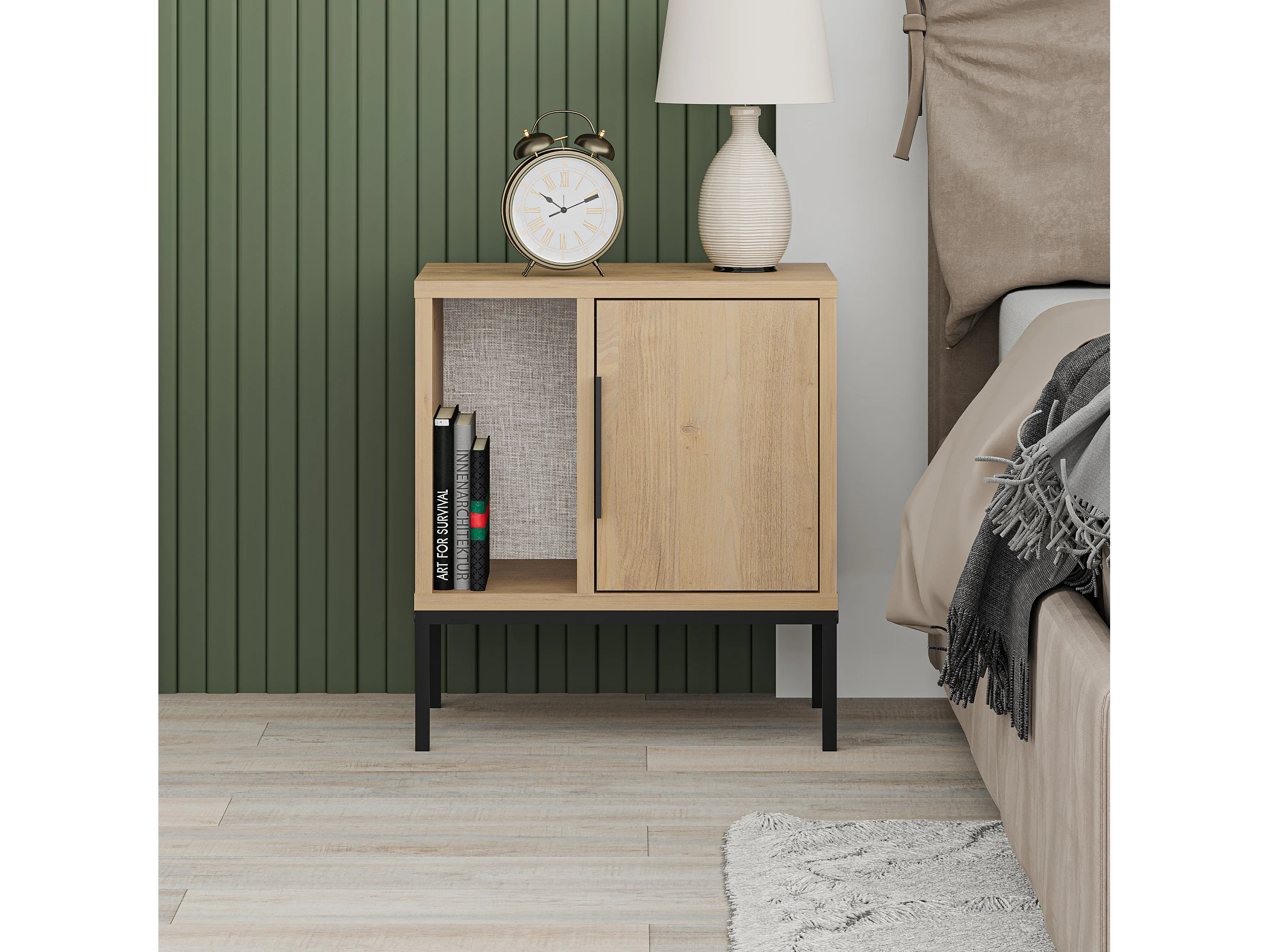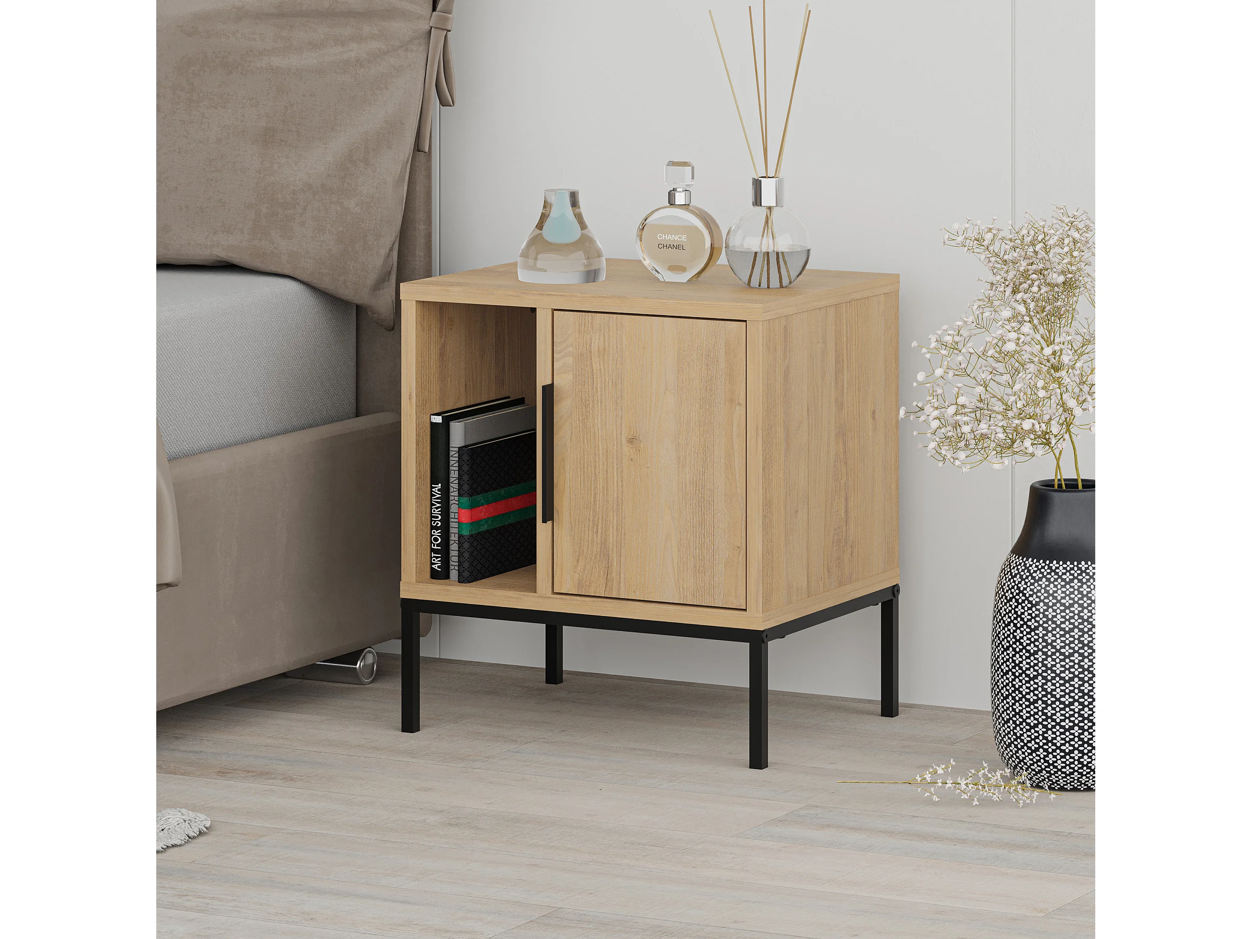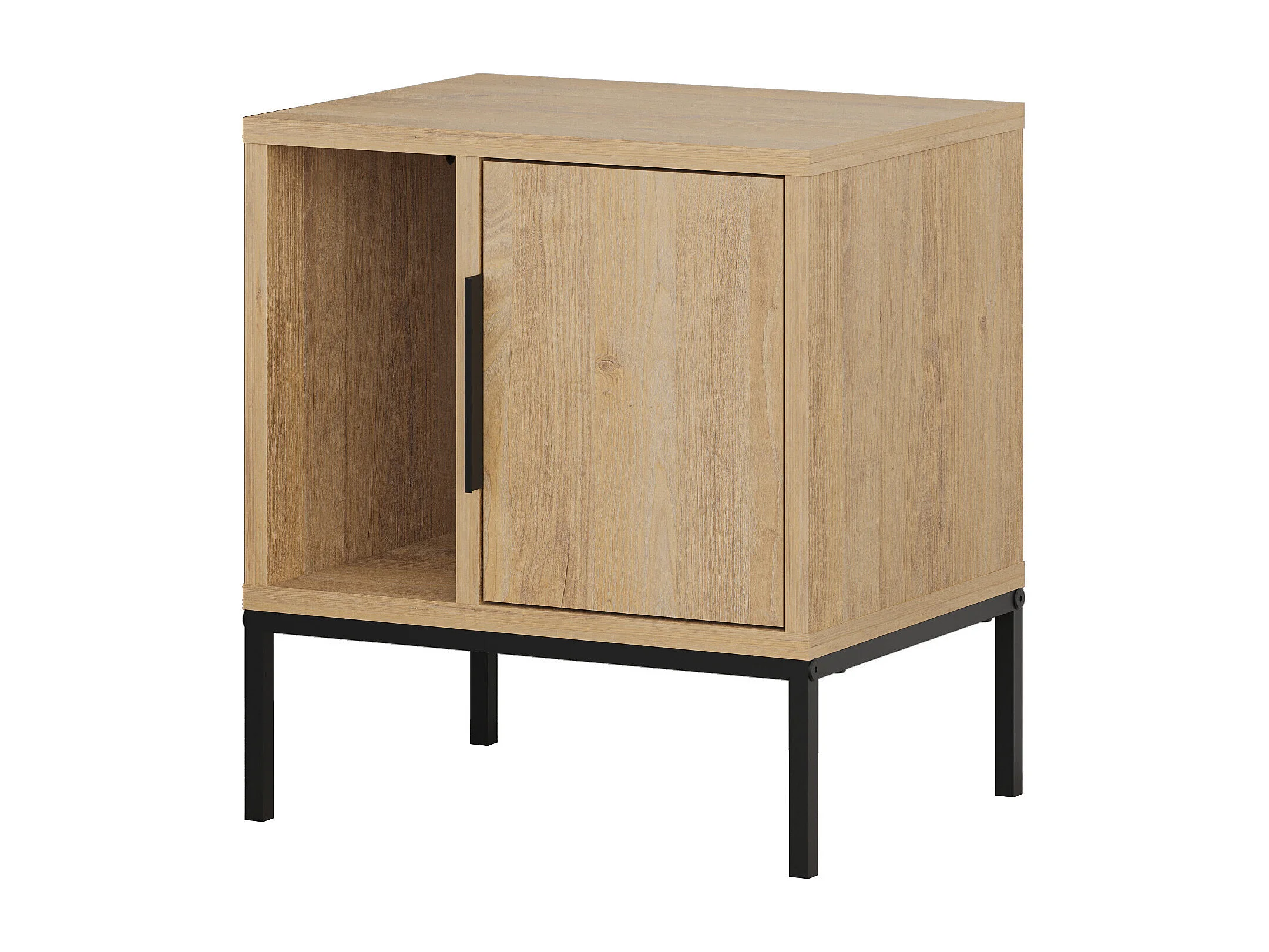 Decortie Chêne 35x45x50cm Table de nuit avec pied en U, panneau de particules, métal Table de chevet rectangulaire Glynn
