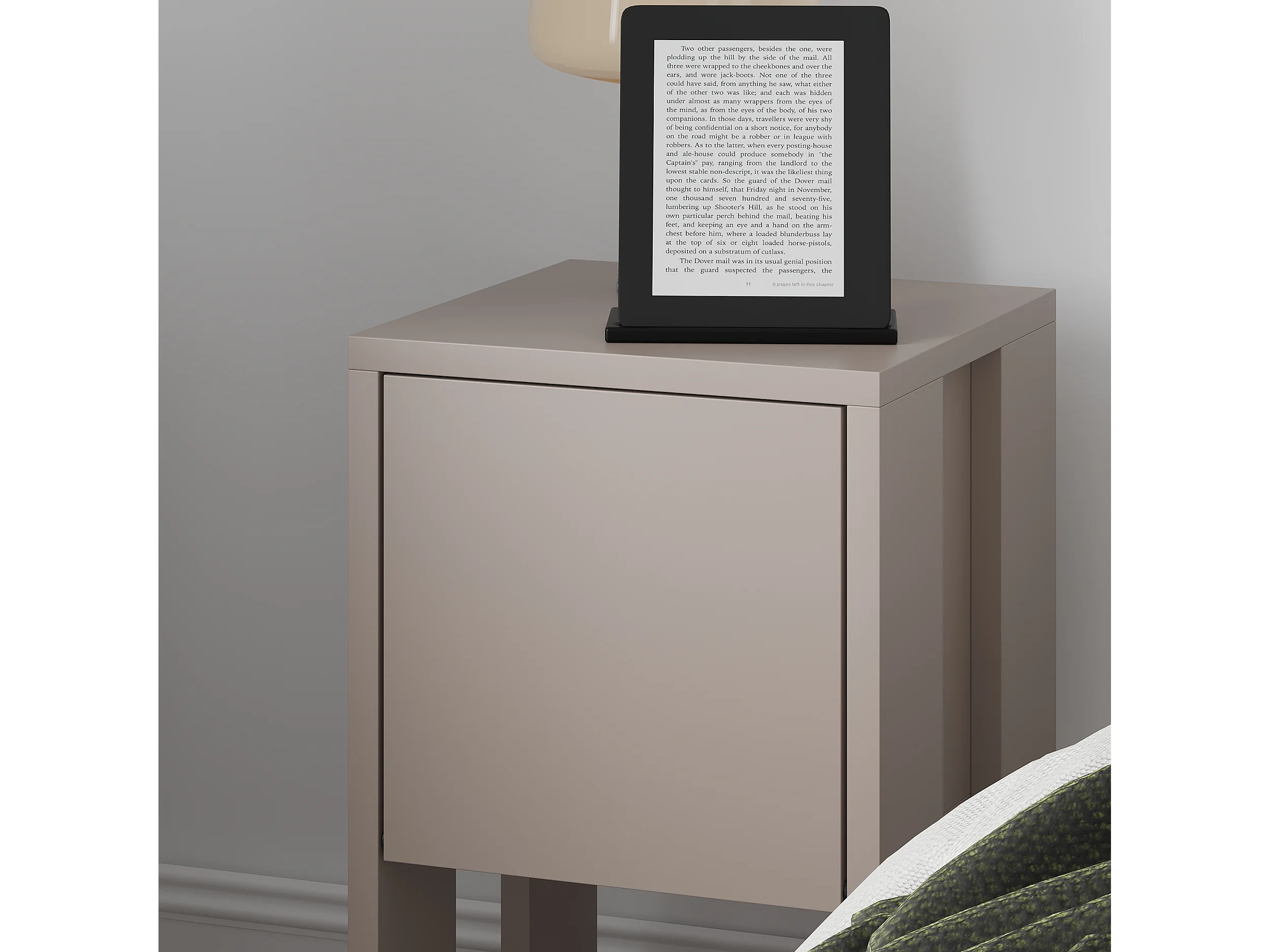 Decortie Ema Table de chevet moderne avec rangement Meuble à porte coulissante Gris moka Largeur 30cm