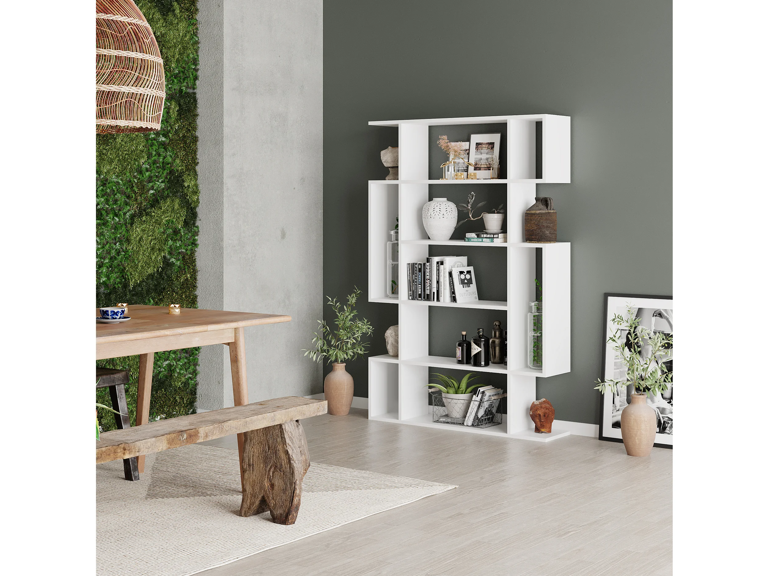 Decortie Mito Bibliothèque moderne autoportante ou murale blanche à 5 niveaux pour la maison et le bureau 161cm