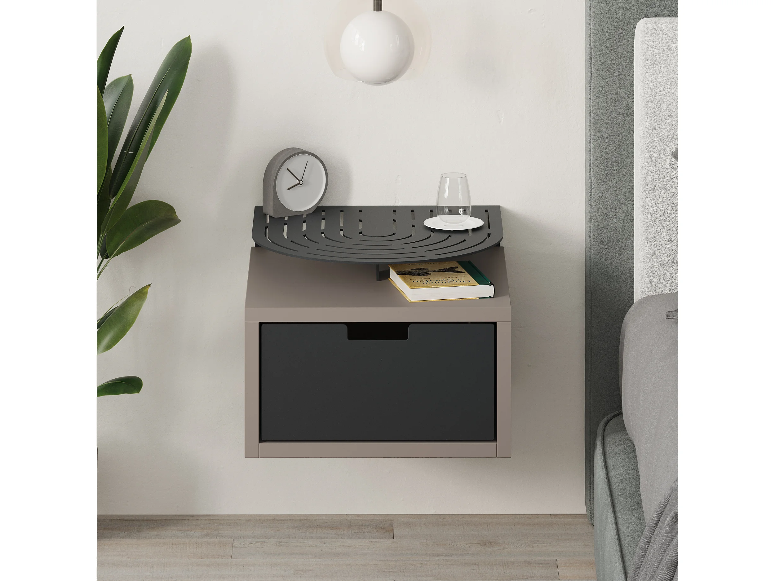 Table de nuit 1 tiroir Rebecca Mobili Kanuka 46,5x40x35,5 Panneau de particules Gris Pierre Moderne